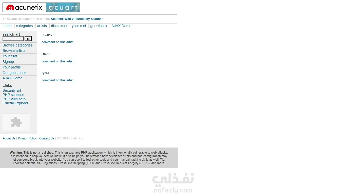 استخدام ال AI Prompts على موقع الويب https://testphp.vulnweb.com هو موقع اختباري وتوضيحي مقصود لماسحات أمن الويب ويحتوي على بيانات منتجات وهمية ومحدودة. واستخراج ملف CSV بناءً على تفاصيل المنتج المحددة المذكورة في المحتوى العام للموقع (في المقام الأول من قسم "الفن/الصورة") لمحاكاة البيانات التي طُلب سحبها."