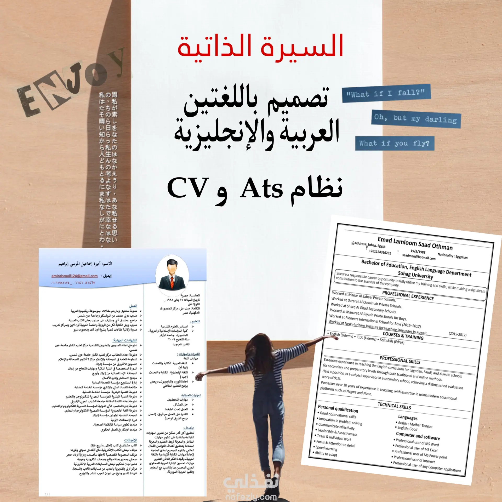 تصميم السيرة الذاتية باللغتين العربية والإنجليزية بنظام CV &ATS مع مراعاة الدقة