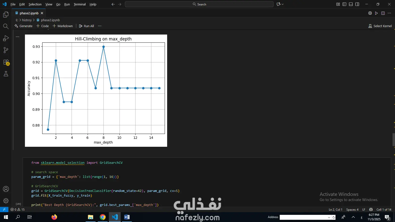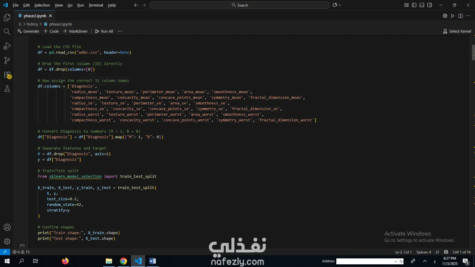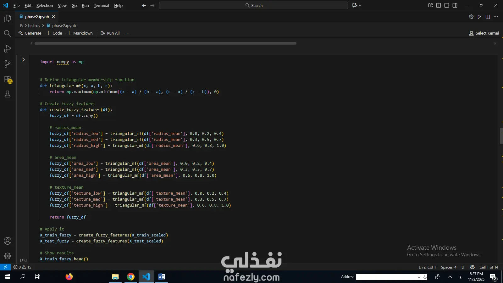 مشروع ذكاء اصطناعي يهدف إلى تشخيص سرطان الثدي باستخدام تقنيات تعلم الآلة (Machine Learning). تم في هذا المشروع استخدام خوارزمية Decision Tree Classifier مع دمج Fuzzy Logic لتحسين دقة النموذج وقدرته على التفسير. يتضمن المشروع جميع مراحل بناء نموذج تعلم الآلة بدءًا من معالجة البيانات وحتى التقييم النهائي، وتشمل الخطوات التالية: تحميل البيانات من مجموعة بيانات سرطان الثدي (Breast Cancer Wisconsin Dataset). تنظيف البيانات بحذف الأعمدة غير المفيدة وتحويل القيم الفئوية إلى رقمية. تجزئة البيانات إلى مجموعة تدريب واختبار بنسبة 80/20. تطبيع الخصائص (Normalization) باستخدام Min-Max Scaler. تطبيق Fuzzy Logic عبر إنشاء ميزات ضبابية (Fuzzy Features) لخصائص radius، area، وtexture. تدريب نموذج Decision Tree على البيانات الجديدة بعد التحويل الضبابي. تحسين الأداء باستخدام طريقتي Hill-Climbing وGrid Search لاختيار أفضل عمق للشجرة. تقييم النموذج من خلال مصفوفة الالتباس (Confusion Matrix) وتقرير التصنيف (Classification Report). عرض النتائج بشكل بصري باستخدام الرسوم البيانية وشجرة القرار لتوضيح كيفية اتخاذ القرارات. 🎯 النتيجة النهائية: نموذج دقيق وقابل للتفسير يساعد في دعم القرار الطبي وتشخيص سرطان الثدي بشكل أفضل من خلال الدمج بين الذكاء الاصطناعي والمنطق الغامض (Fuzzy Logic).