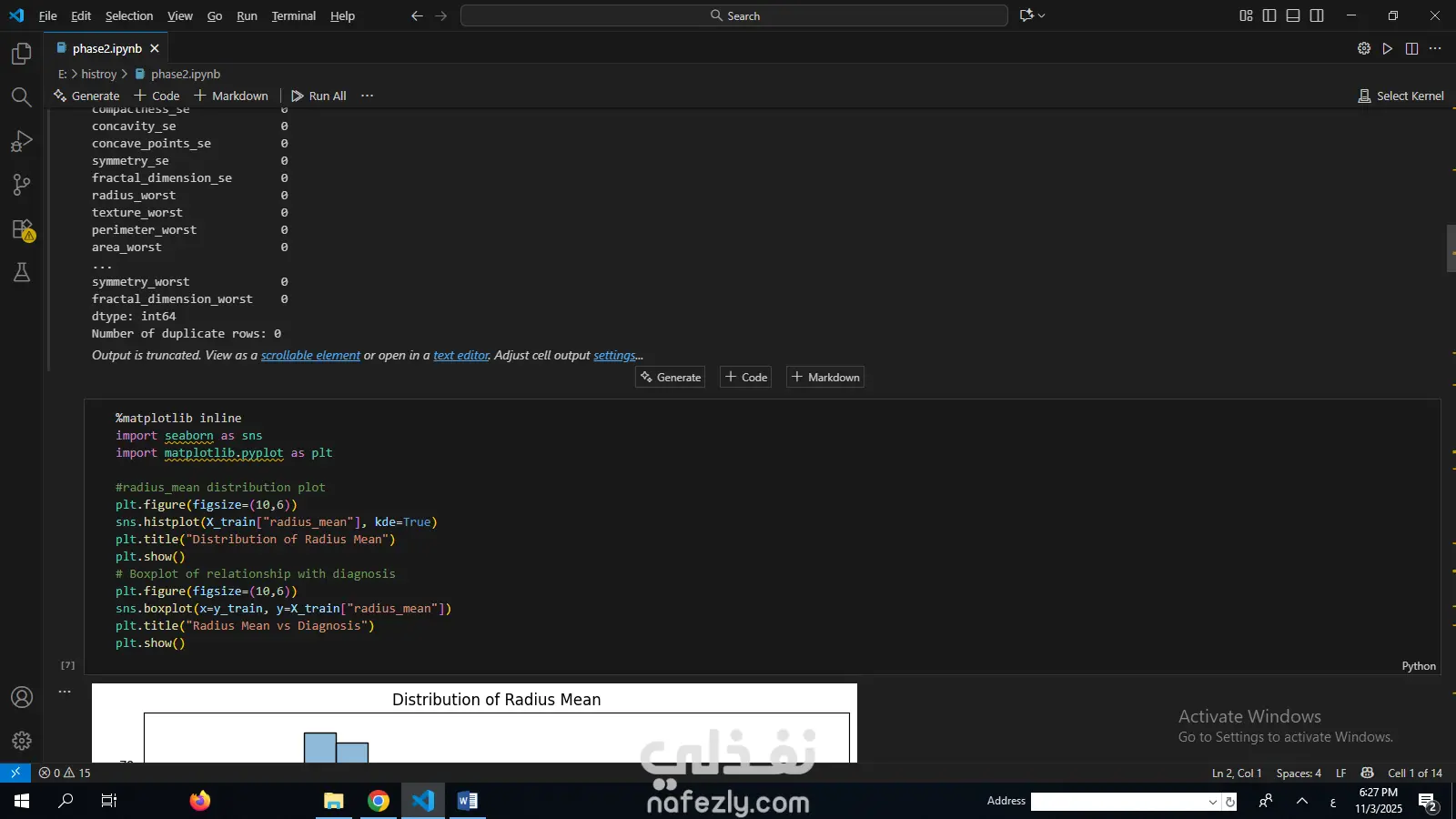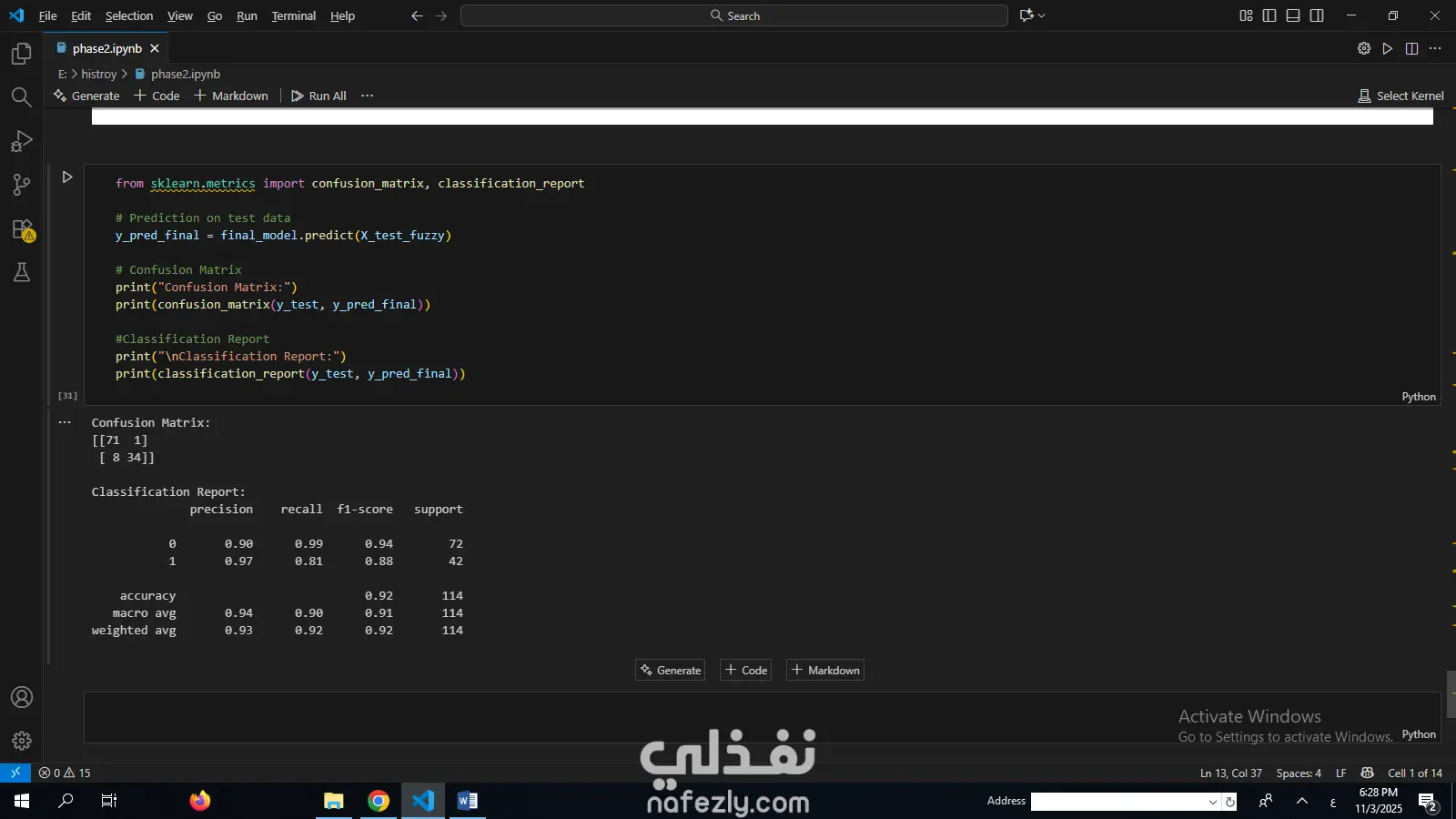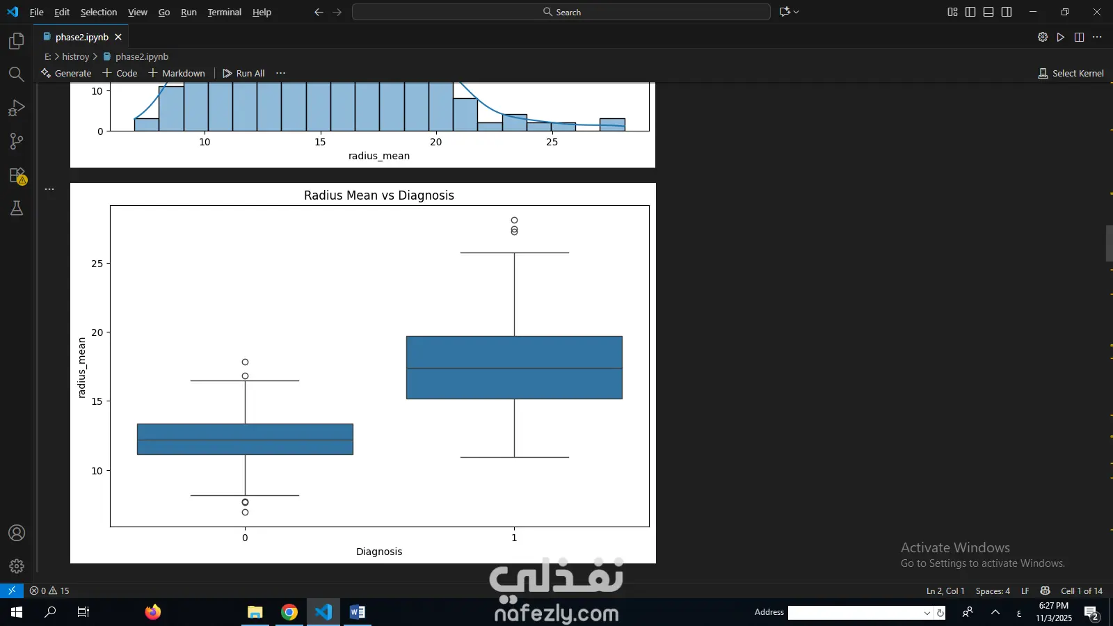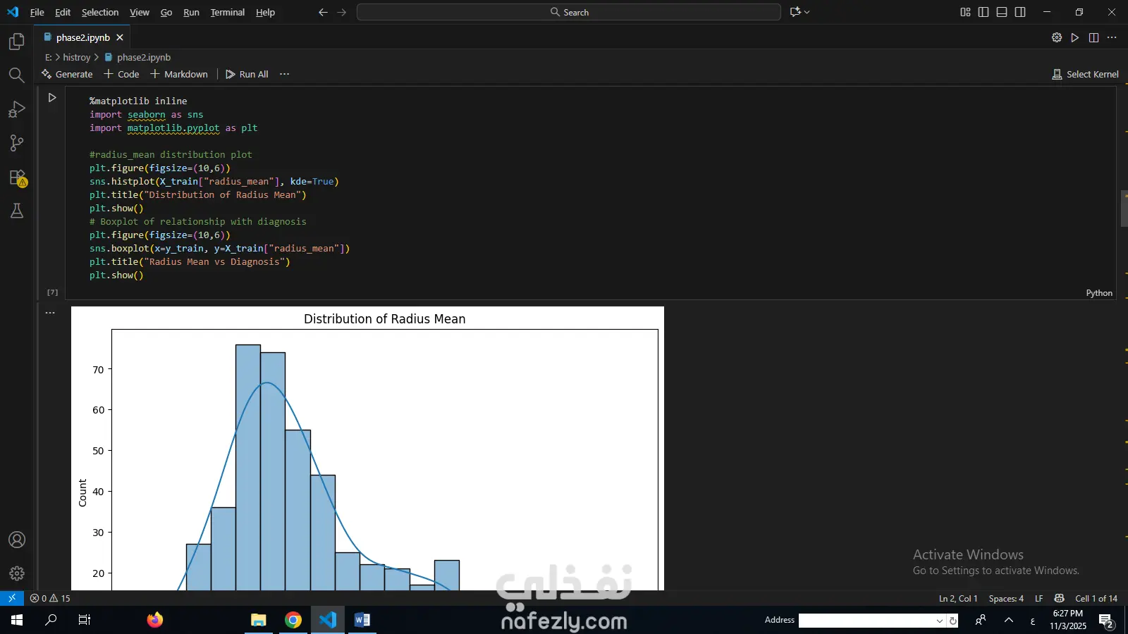 مشروع ذكاء اصطناعي يهدف إلى تشخيص سرطان الثدي باستخدام تقنيات تعلم الآلة (Machine Learning). تم في هذا المشروع استخدام خوارزمية Decision Tree Classifier مع دمج Fuzzy Logic لتحسين دقة النموذج وقدرته على التفسير. يتضمن المشروع جميع مراحل بناء نموذج تعلم الآلة بدءًا من معالجة البيانات وحتى التقييم النهائي، وتشمل الخطوات التالية: تحميل البيانات من مجموعة بيانات سرطان الثدي (Breast Cancer Wisconsin Dataset). تنظيف البيانات بحذف الأعمدة غير المفيدة وتحويل القيم الفئوية إلى رقمية. تجزئة البيانات إلى مجموعة تدريب واختبار بنسبة 80/20. تطبيع الخصائص (Normalization) باستخدام Min-Max Scaler. تطبيق Fuzzy Logic عبر إنشاء ميزات ضبابية (Fuzzy Features) لخصائص radius، area، وtexture. تدريب نموذج Decision Tree على البيانات الجديدة بعد التحويل الضبابي. تحسين الأداء باستخدام طريقتي Hill-Climbing وGrid Search لاختيار أفضل عمق للشجرة. تقييم النموذج من خلال مصفوفة الالتباس (Confusion Matrix) وتقرير التصنيف (Classification Report). عرض النتائج بشكل بصري باستخدام الرسوم البيانية وشجرة القرار لتوضيح كيفية اتخاذ القرارات. 🎯 النتيجة النهائية: نموذج دقيق وقابل للتفسير يساعد في دعم القرار الطبي وتشخيص سرطان الثدي بشكل أفضل من خلال الدمج بين الذكاء الاصطناعي والمنطق الغامض (Fuzzy Logic).
