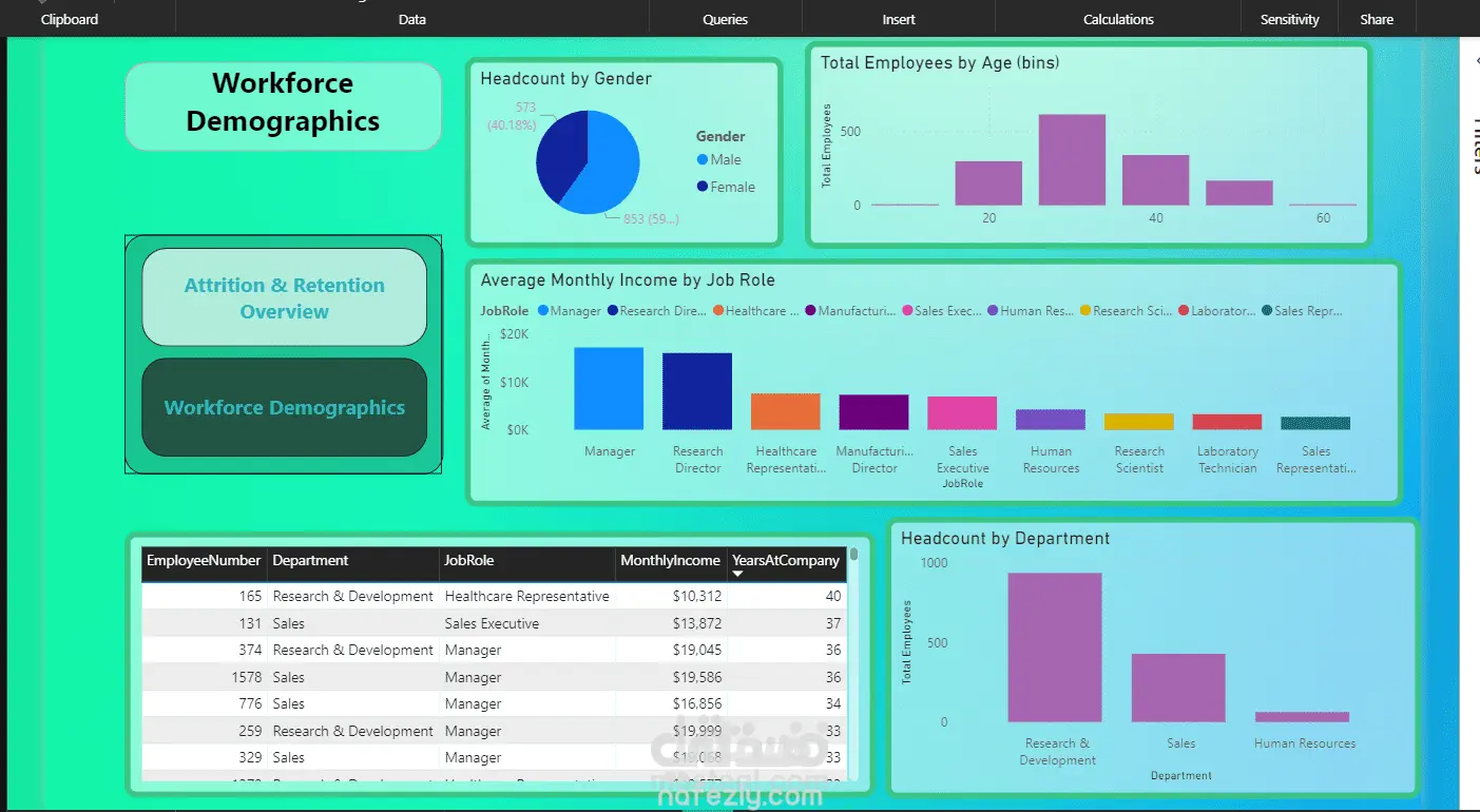 تصميم Dashboard للموارد البشرية (HR) باستخدام Power BI