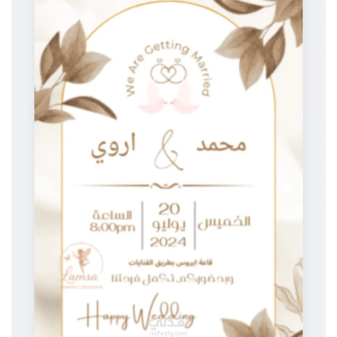 تصميم كارت زفاف أنيق ولمسة فنية راقية ✨
