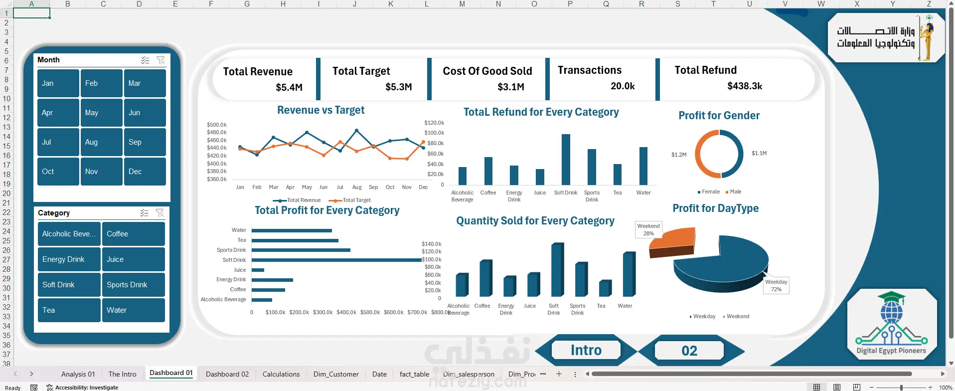 يركز هذا المشروع على تحليل البيانات وتصورها بشكل شامل باستخدام برنامج مايكروسوفت إكسل، لتحويل البيانات الأولية إلى رؤى تجارية قيّمة.