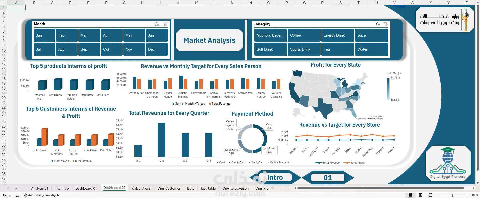 يُظهر هذا المشروع قدرات إكسل المتقدمة، حيث يجمع بين تنظيف البيانات وتحليلها وتصورها في لوحة تحكم احترافية وغنية بالمعلومات جاهزة لدعم عملية اتخاذ القرار.