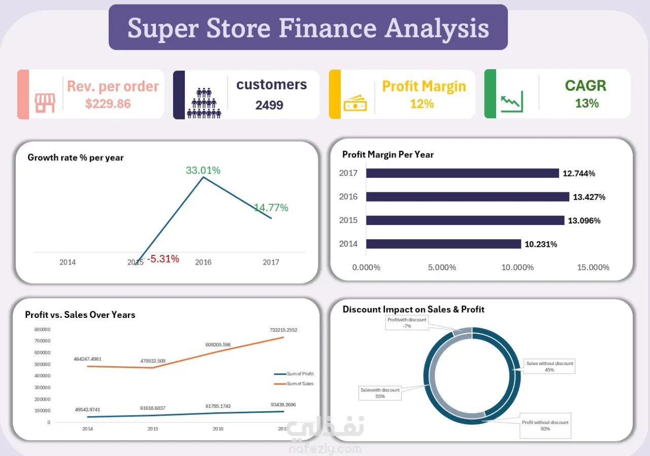 مت بتحليل بيانات الأداء المالي لمتجر إلكتروني بهدف تحديد أسباب تذبذب معدّل النمو وهامش الربح عبر السنوات. •اكتشفت أسباب انخفاض معدّل النمو إلى -5% في سنة معينة، وفسّرت أسباب ارتفاعه مجددًا إلى 33% في السنة التالية. •حلّلت تأثير الخصومات على المنتجات على هامش الربح والإيرادات العامة. •قدّمت توصيات عملية لزيادة معدّل النمو وتحسين استراتيجيات التسعير بناءً على النتائج المستخلصة من التحليل. الأدوات المستخدمة: Excel