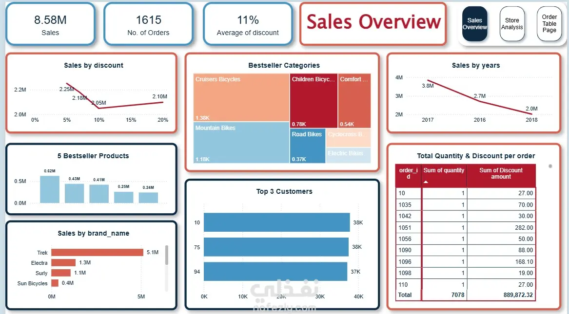 •حللت أكثر من 8.5 مليون مبيعات و1615 طلب لتوضيح الاتجاهات السنوية ونِسَب الخصومات ومتوسطاتها.