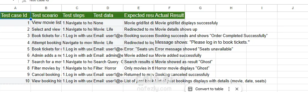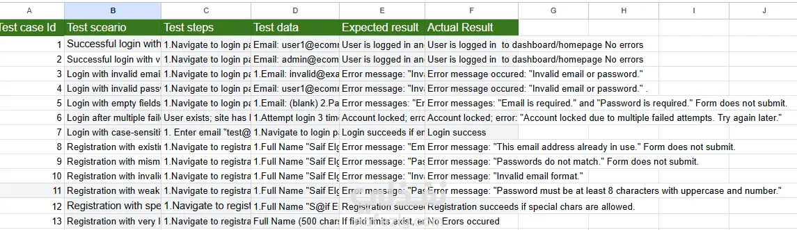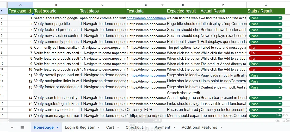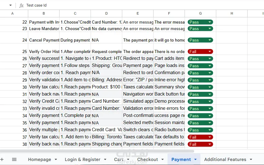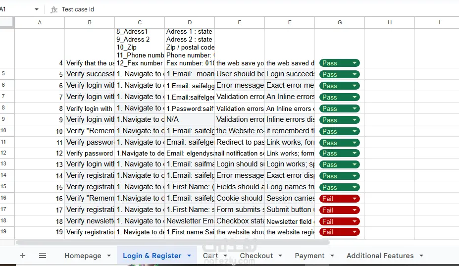 - حالات اختبار (test cases) دقيقه و احترافية تشمل كل شي في شيت excel او google sheets حسب رغبتك.