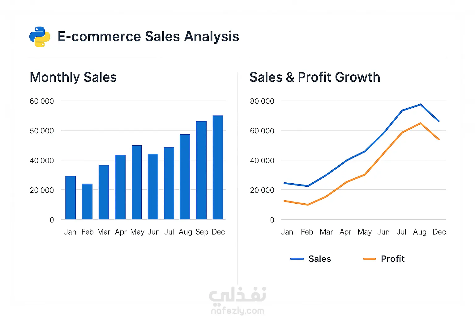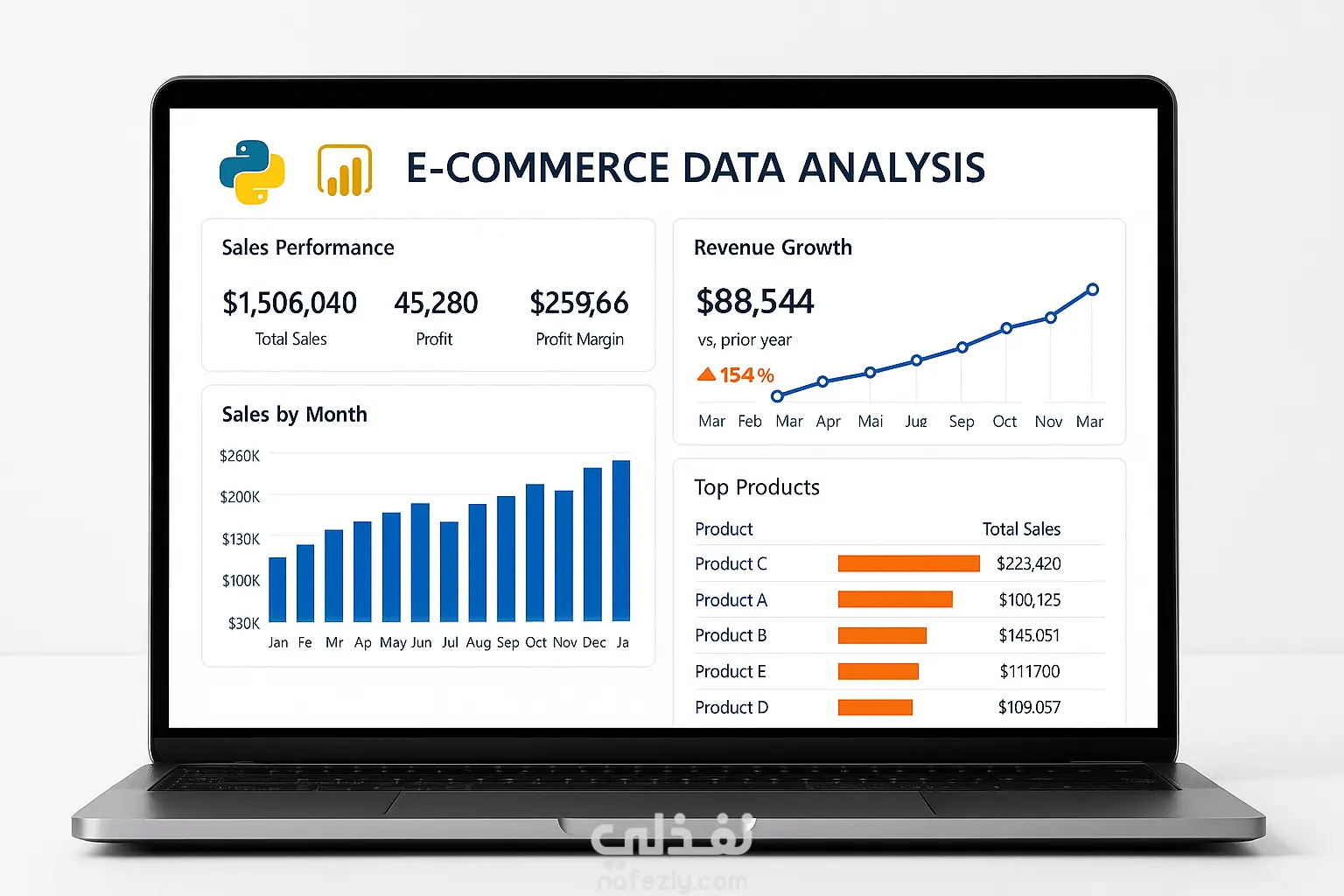 الوصف: تحليل بيانات مبيعات متجر إلكتروني باستخدام Python لعرض الأداء الشهري ونسبة النمو في الأرباح. تم استخدام أدوات تحليل متقدمة لاستخلاص مؤشرات البيع، سلوك العملاء، والفترات الأعلى ربحية. النتيجة: تحسين التخطيط التسويقي وتوقع الطلب المستقبلي. الأدوات المستخدمة: Pandas – Matplotlib – Seaborn – Plotly