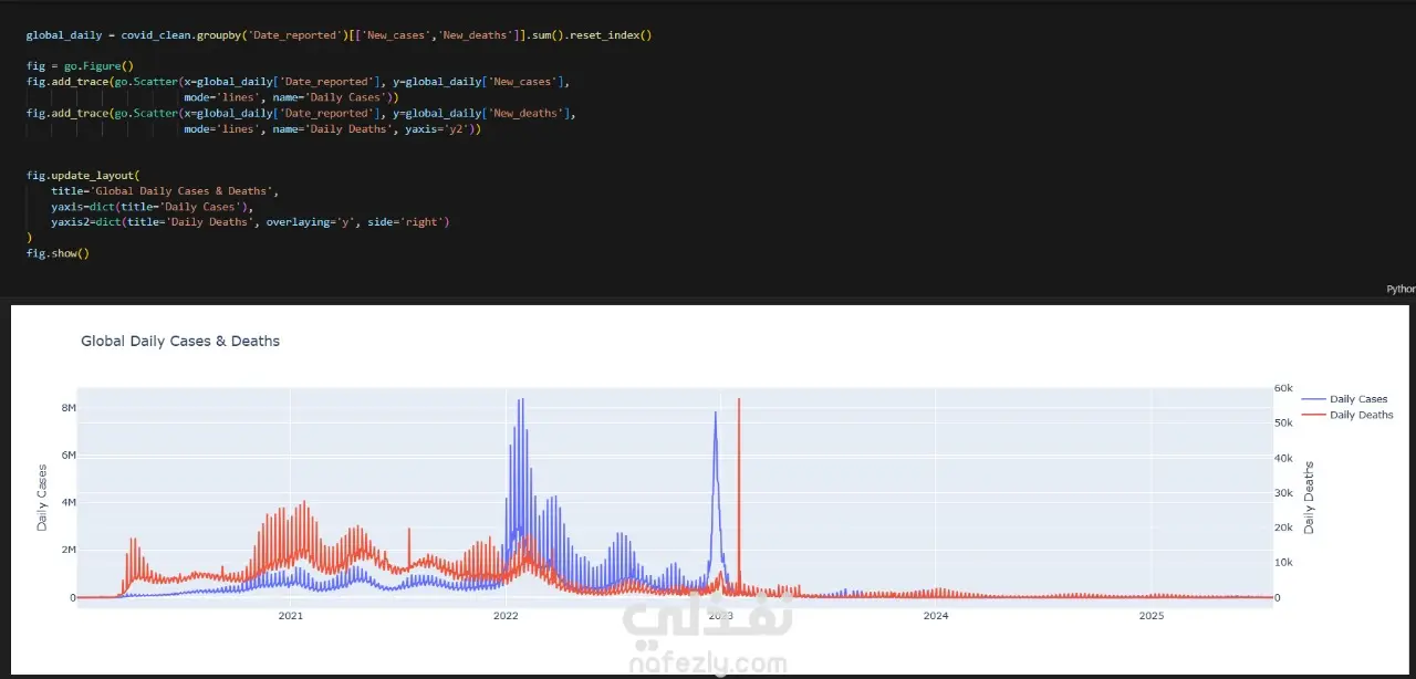 Analyzed real-world COVID-19 datasets to uncover trends and patterns in infection and recovery rates. The project involved cleaning and processing data using Python and Pandas, and creating clear and informative visualizations including line charts, bar charts, and heatmaps with Matplotlib and Seaborn. The insights generated helped understand how the pandemic evolved over time and highlighted key patterns in the spread and recovery of the virus. Tools & Technologies: Python, Pandas, Matplotlib, Seaborn