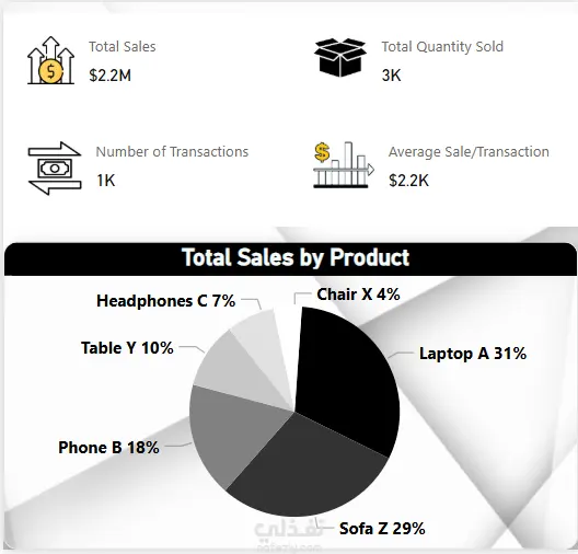 - مؤشرات الأداء الرئيسية: إجمالي المبيعات، الكمية المباعة، عدد المعاملات، ومتوسط المبيعات لكل عملية.