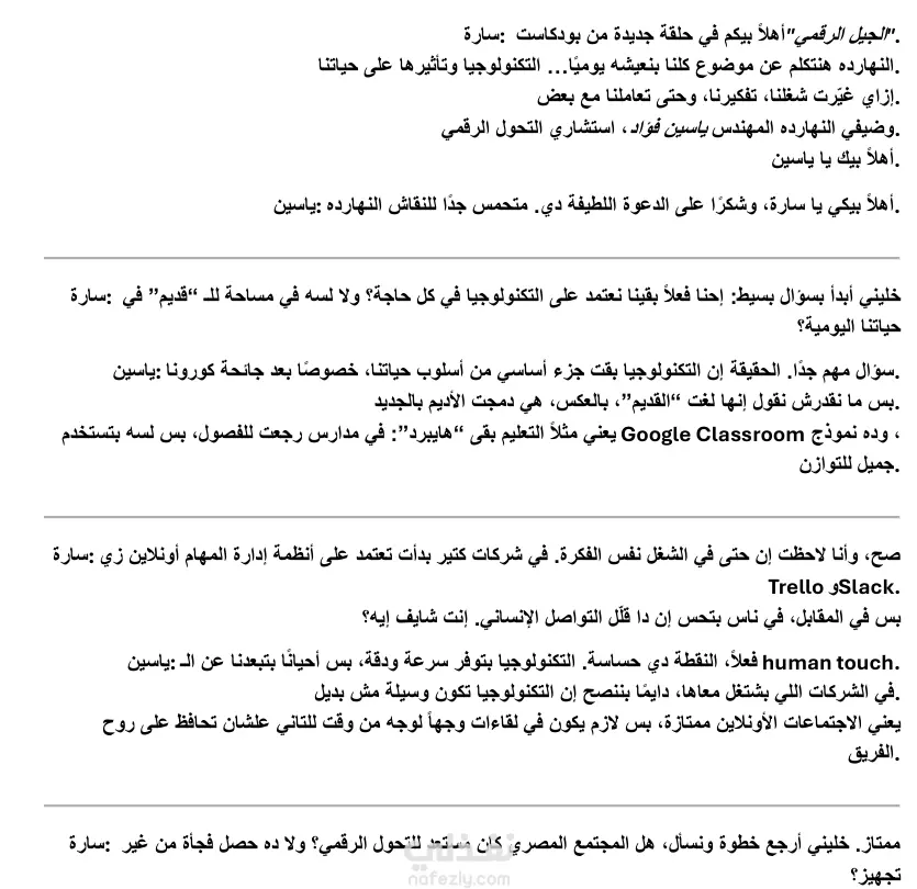 تفريغ صوتي للقاء للحديث عن تأثير التكنولوجيا على حياتنا اليومية