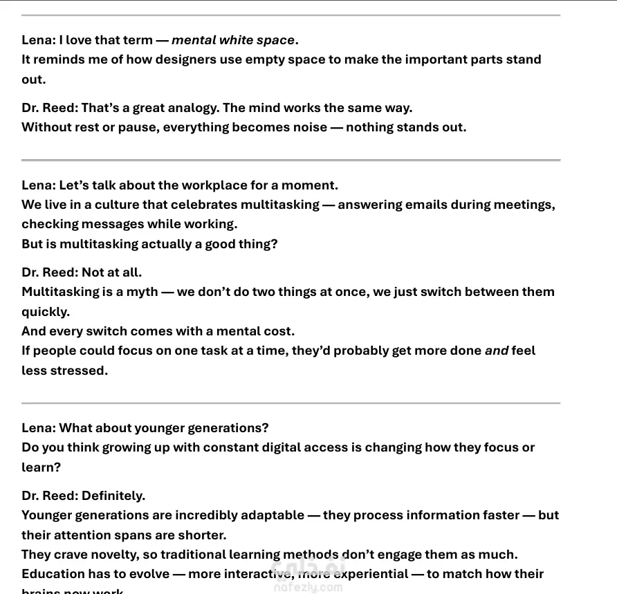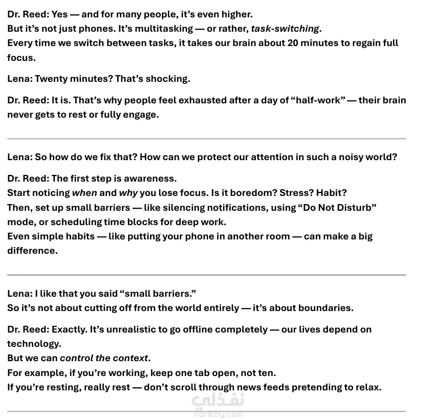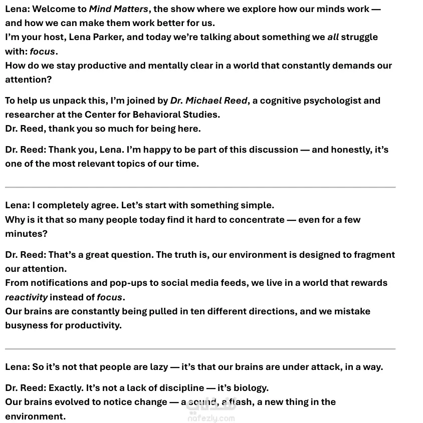 تفريغ صوتي للقاء للحديث عن أهمية التركيز