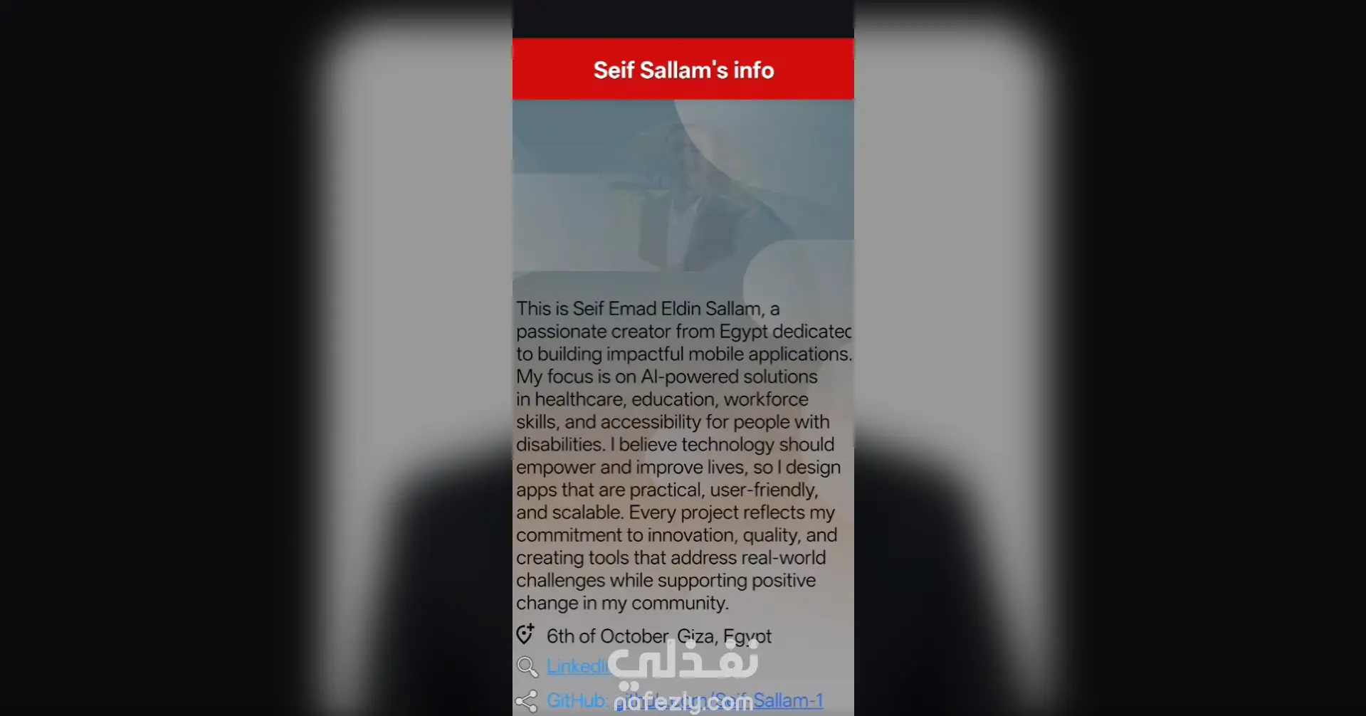 سأقدّم لك تطبيق Info App، وهو تطبيق تفاعلي يعرض البيانات والصور والروابط بشكل منظّم وسهل التصفح. يتميز التطبيق بدعم اللغتين (العربية والإنجليزية) وتصميم متجاوب يعمل على مختلف الأجهزة والأوضاع.