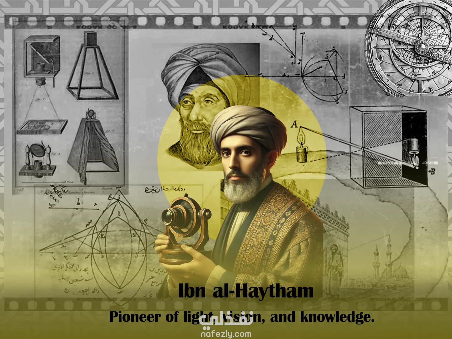 تصميم جرافيكي يجمع بين عناصر فنية وتأثيرات ضوئية لإبراز شخصيات تاريخية بطريقة حديثة ومبتكرة. تم استخدام الدمج البصري والألوان المتباينة لخلق طابع درامي وجذاب مناسب للأعمال الفنية أو الحملات الإعلانية.