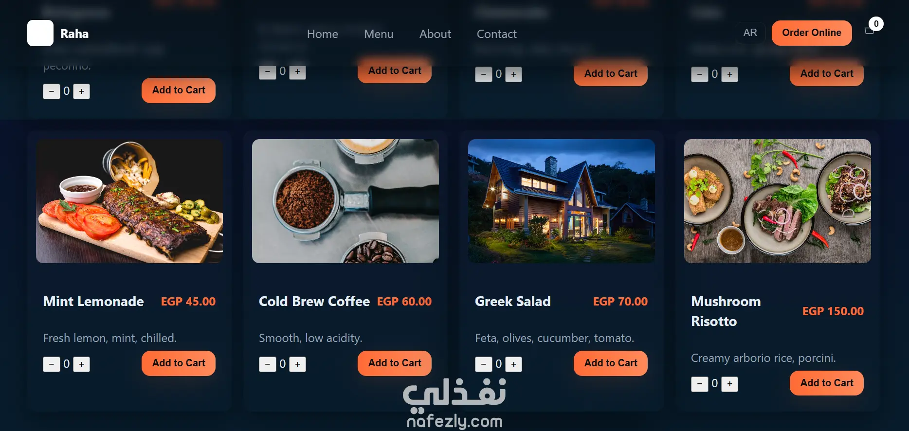 قمت بتصميم وتطوير واجهة موقع احترافية خاصة بالمطاعم باستخدام HTML, CSS, Bootstrap, وJavaScript، بتصميم عصري ومتجاوب يعمل بسلاسة على جميع الأجهزة.
