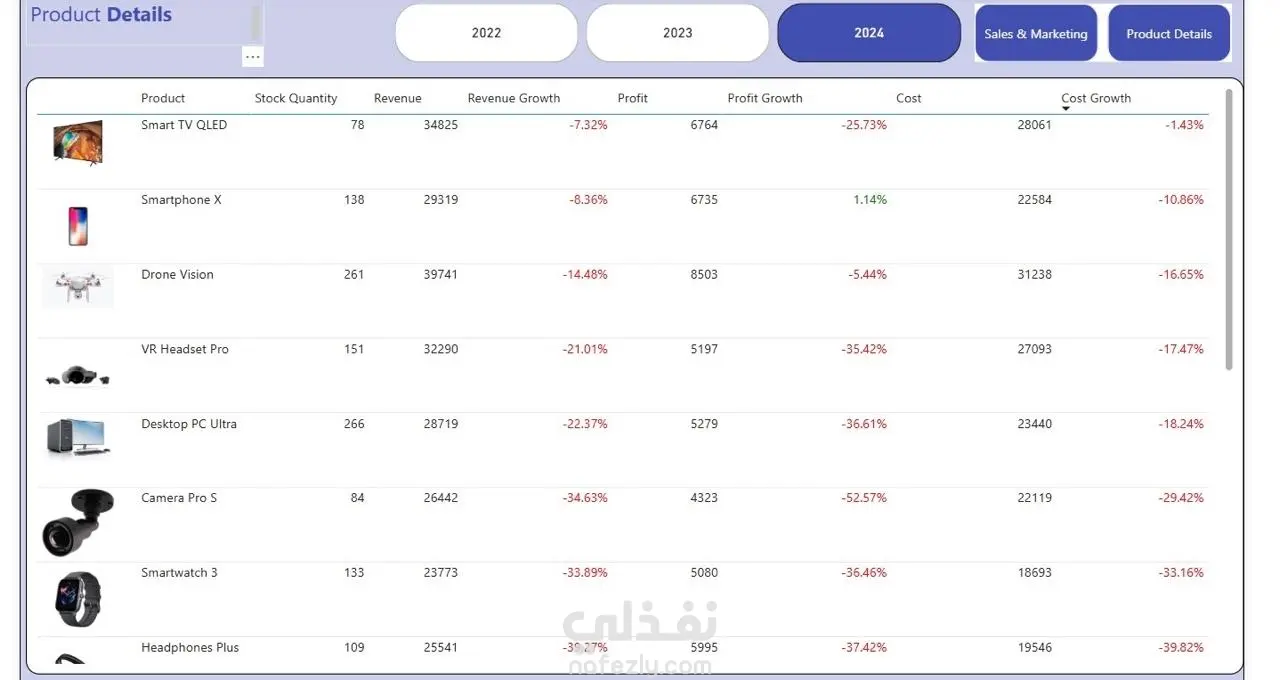 تقدّم تحليلًا تفصيليًا لكل منتج يشمل: