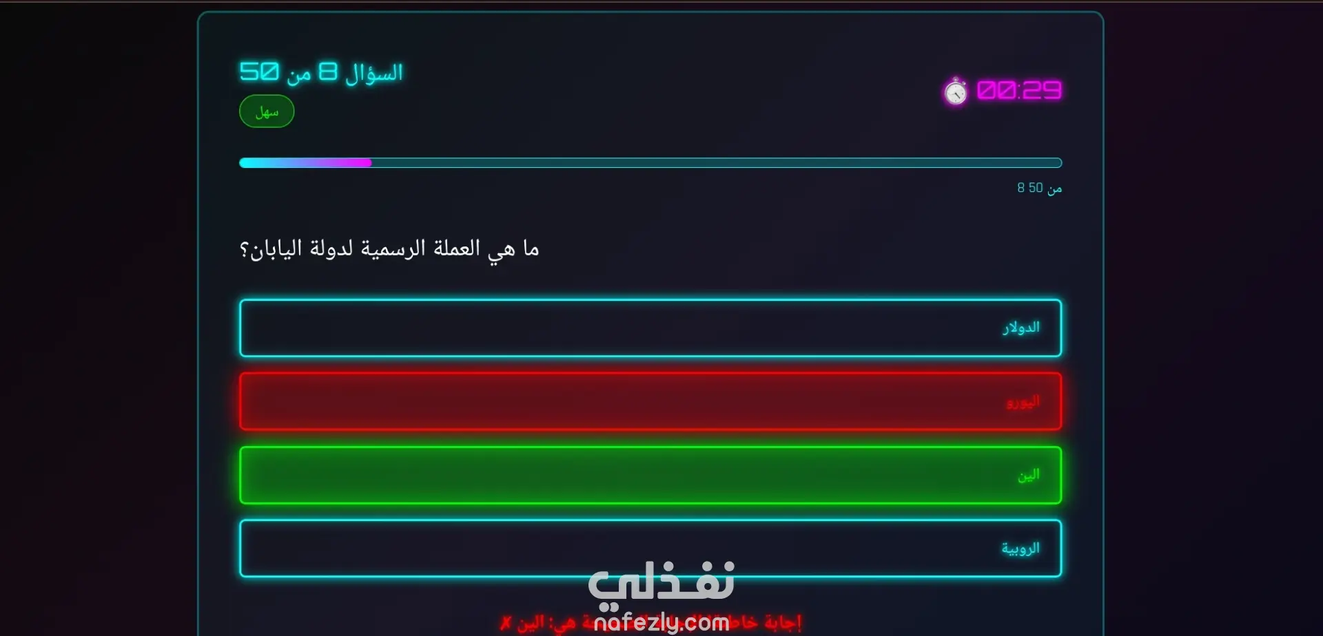 موقع إلكتروني للعبة أسئلة تفاعلية