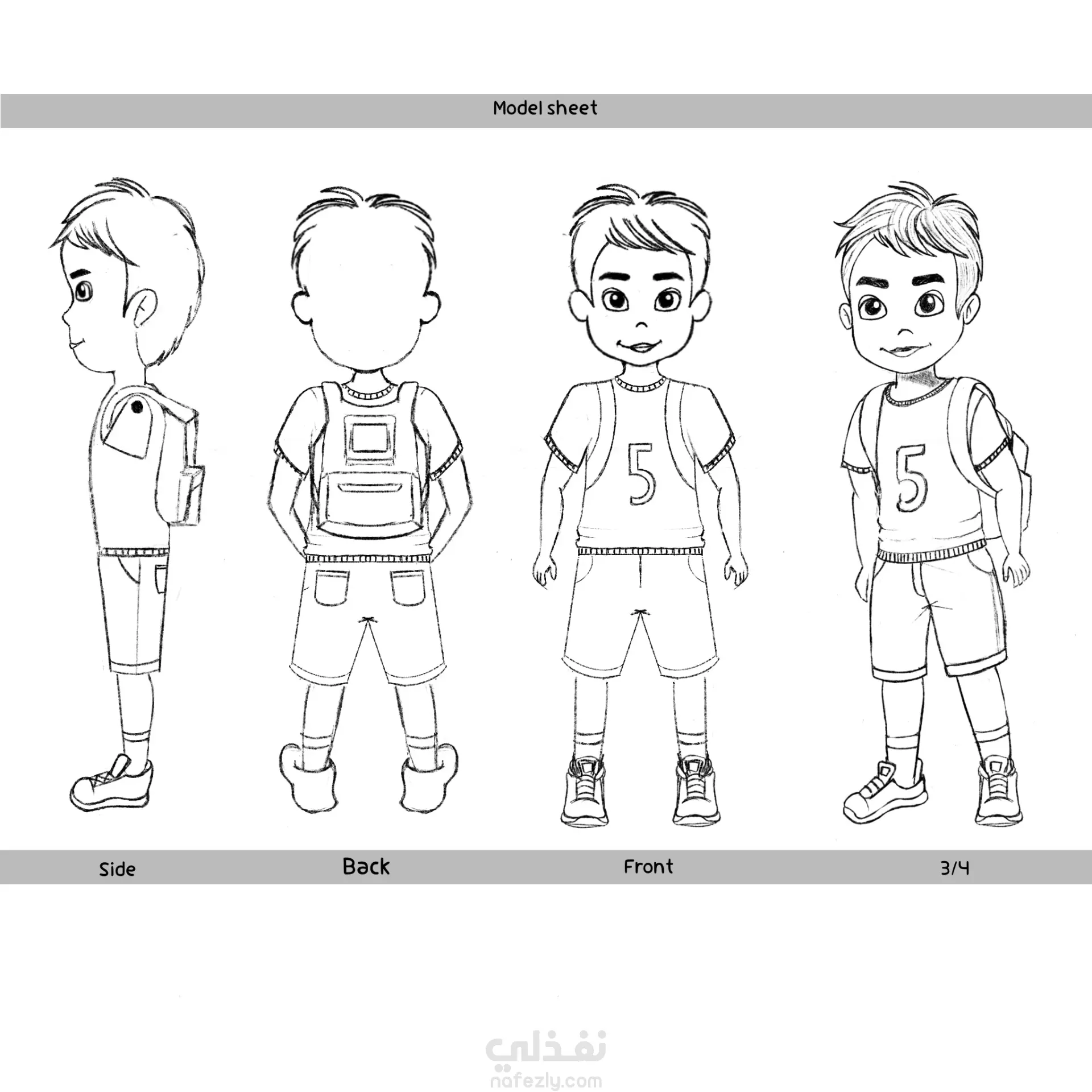 Model sheet of different characters design