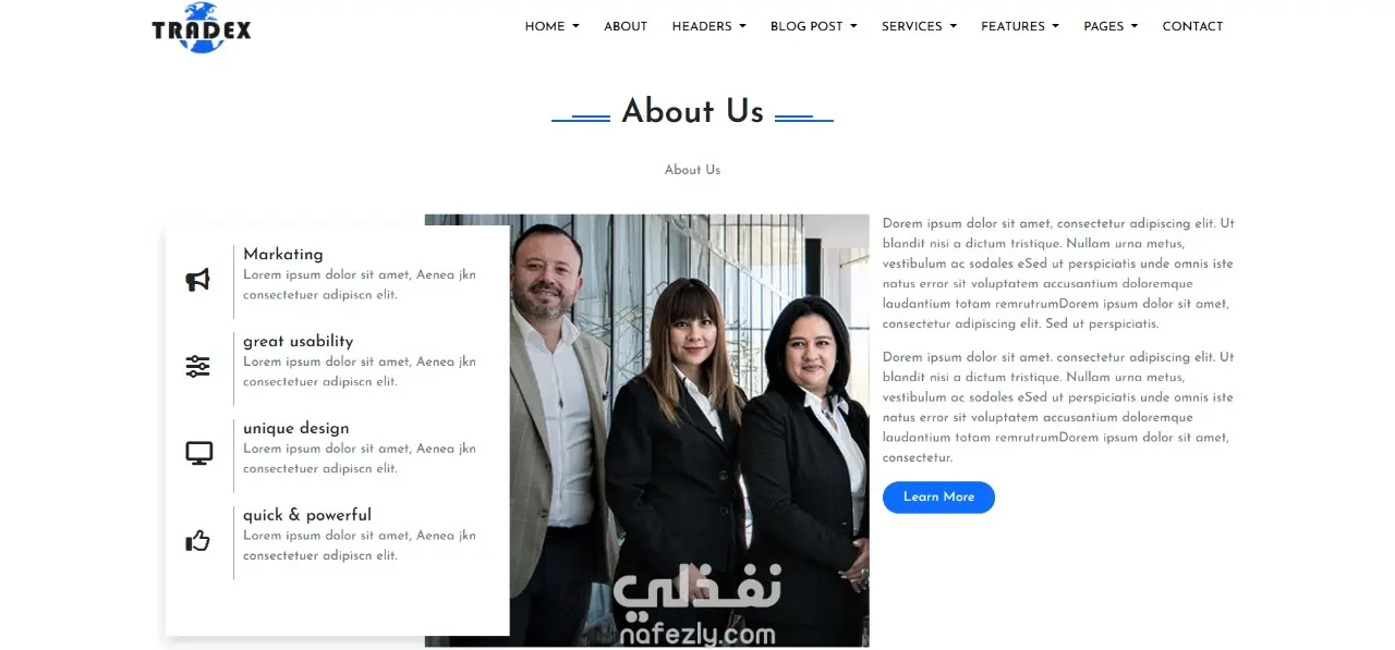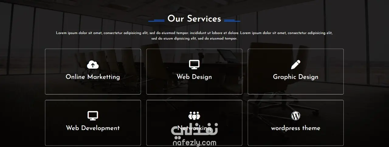 - موقع ويب احترافي بتصميم عصري وجذاب - واجهة مستخدم سهلة وسلسة (UI/UX Design) - تصميم متجاوب 100% (Responsive) - يعمل بكفاءة على الهواتف، الأجهزة اللوحية، وأجهزة الكمبيوتر - صفحات متعددة (الرئيسية، من نحن، الخدمات، اتصل بنا، إلخ) - تصميم سريع ومُحسّن للأداء (Fast Loading) - كود نظيف ومُنظّم وسهل الصيانة - تفاعلية عالية مع المستخدم (Interactive Elements) - متوافق مع جميع المتصفحات (Cross-Browser Compatible)