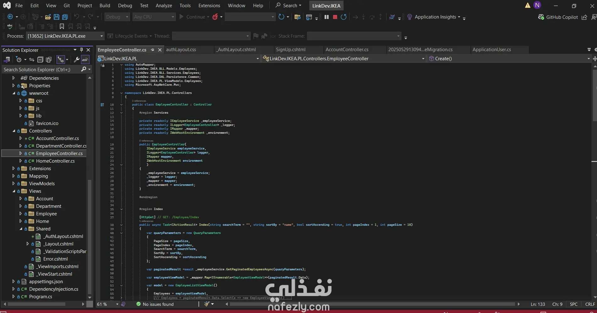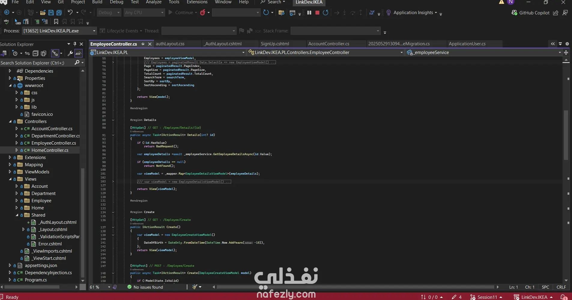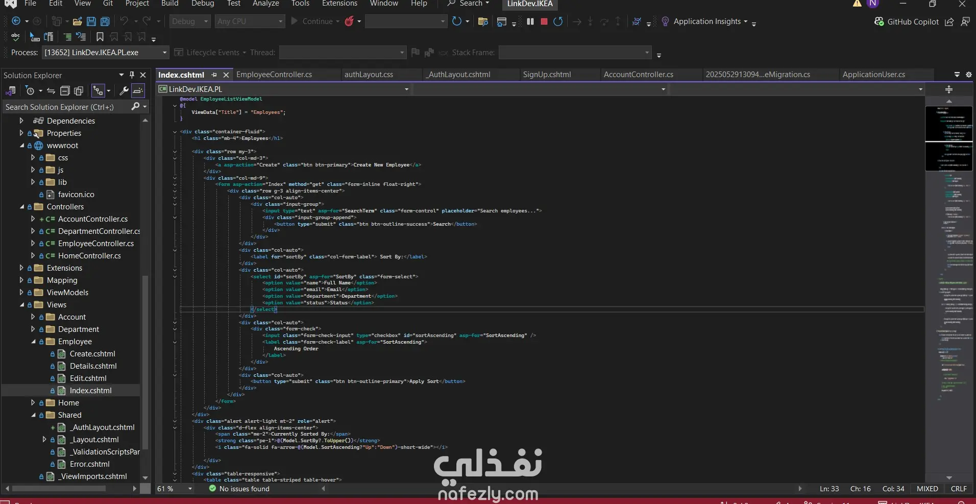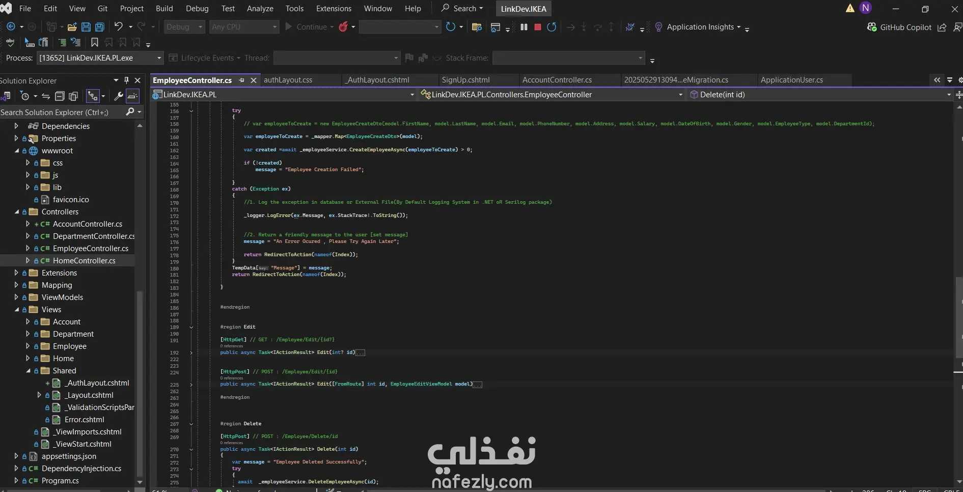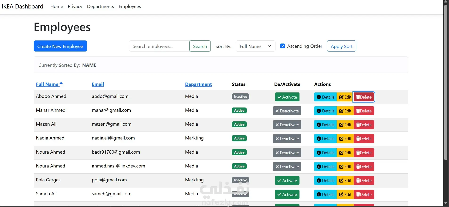 نظام إدارة الموظفين والأقسام باستخدام ASP.NET MVC