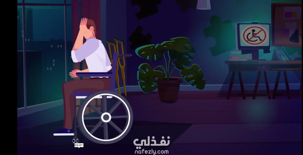 اخراج فيديو موشن جرافيك للترويج لشركة تساعد ذوى الاحتياجات الجزء المنوط بى هو شعور البطل بالاحباط بعد رفضة من المجتمع والعمل . ثم ظهور رحمه المجتمع والشركة المموله للفيديو كشعار يد تحنو على البطل وتساعده للنهوض مجددا فيبدأ رحله الصمود والعودة