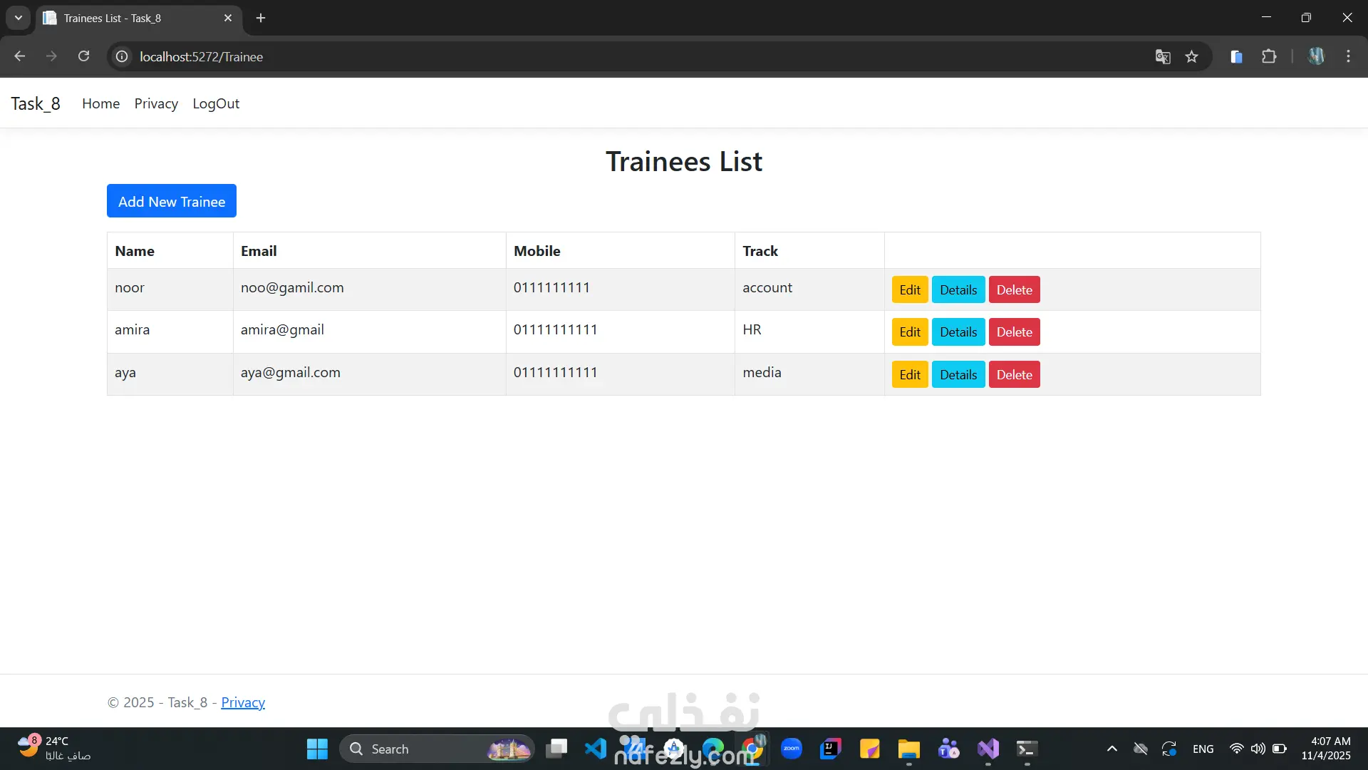 نظام إدارة المتدربين ASP.NET MVC