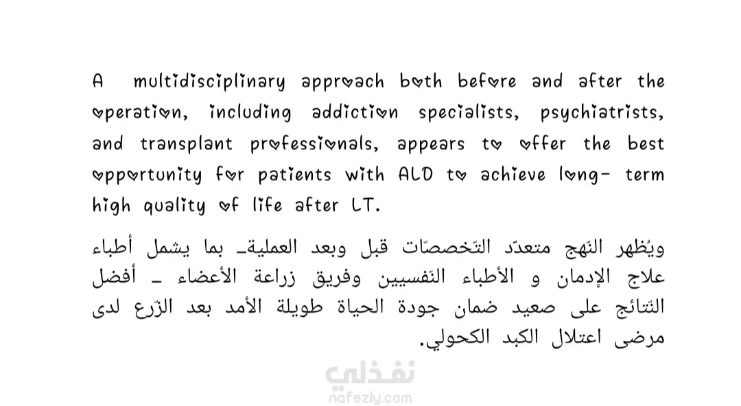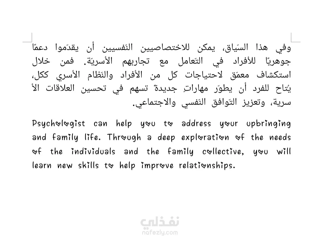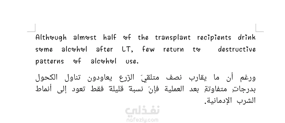 _بحكم خبرتي وعملي في مجال الترجمة الطبية، أقدم لك خدمة ترجمة المحتوى الطّبيّ بطريقة مبسطة، وبأسلوب متقدم. _أعمل على نقل النصوص الطبية والعلمية بدقة متناهية. _حاصلة على شهادة خبرة في ترجمة المقالات والأبحاث العلميّة. _مجالات الترجمة: طب وصحة. تغذية. صحة. تجميل. رياضة. علم نفس. أدوية. أسنان. تاريخ طبي. المرأة والطفل. ثقافة طبية. مميزات الخدمة الوقت: التزام صارم بالمواعيد المحددة والمتفق عليها مع سرعة في الإنجاز دون الإخلال بالجودة. الدّقة: مراجعة وتدقيق لغوي للنصوص المترجَمة للتأكد من خلوها من أي خطأ. الهدف: وضوح وسلاسة في الأسلوب مع الحفاظ على سلامة المصطلح العلمي. الخدمة: خدمة موثوقة تلبي احتياجات الأطباء والباحثين والمراكز الطبية ودور النشر. السرية: الالتزام التام بسرية المعلومات و النصوص المترجمة. عدد التعديلات: حتى الرضا التام للعميل.