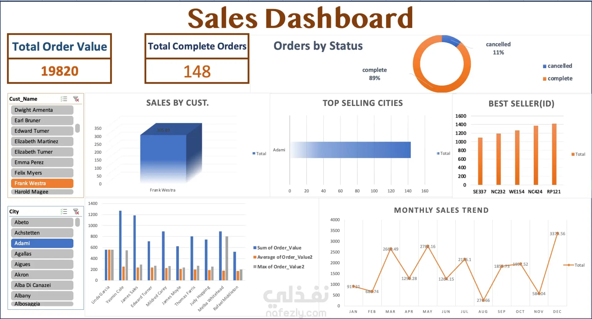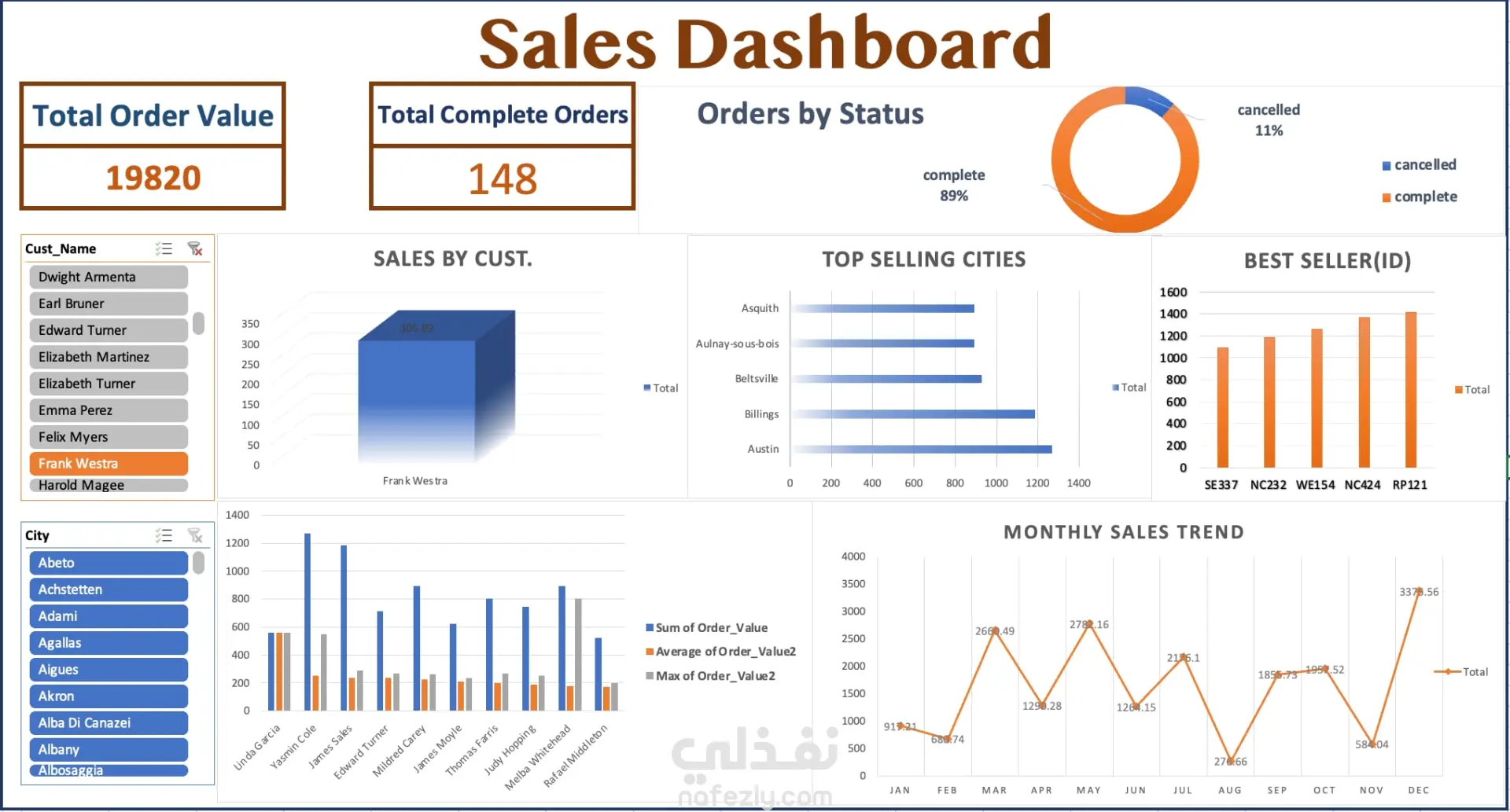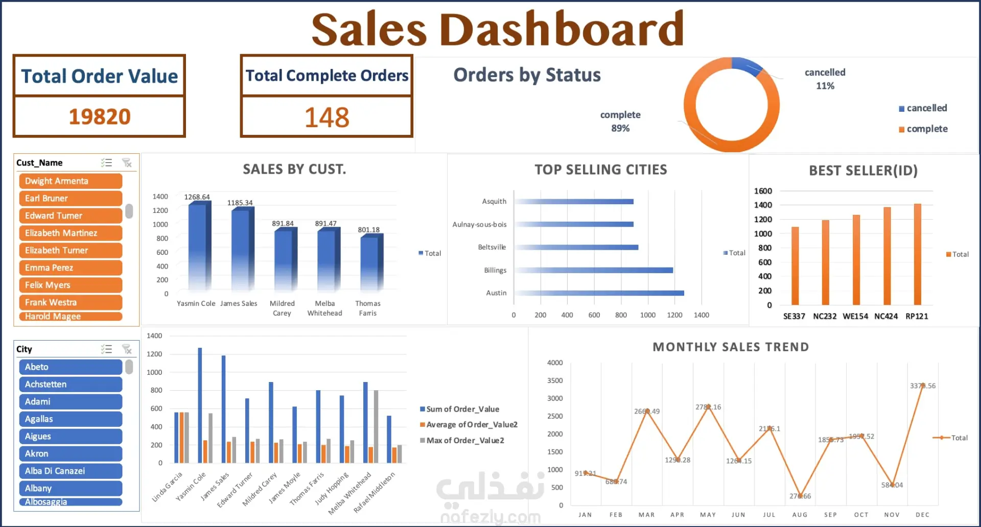 Interactive Excel Dashboard for analyzing sales performance and business KPIs using pivot tables , charts , and data visualization .