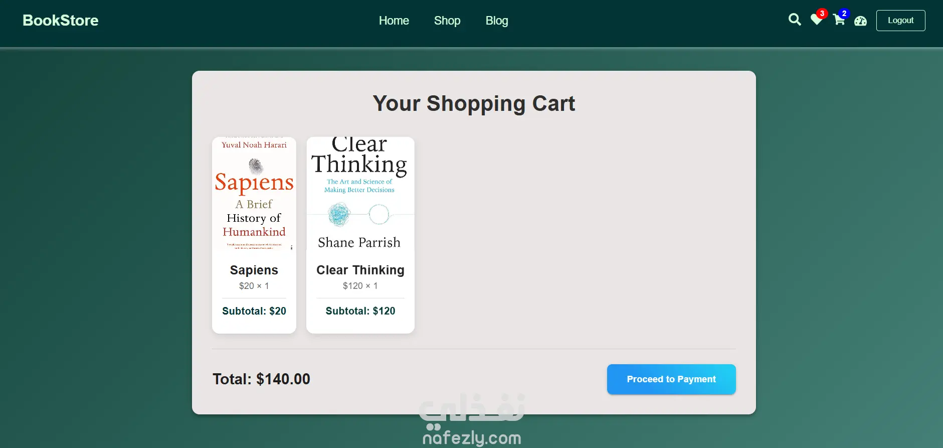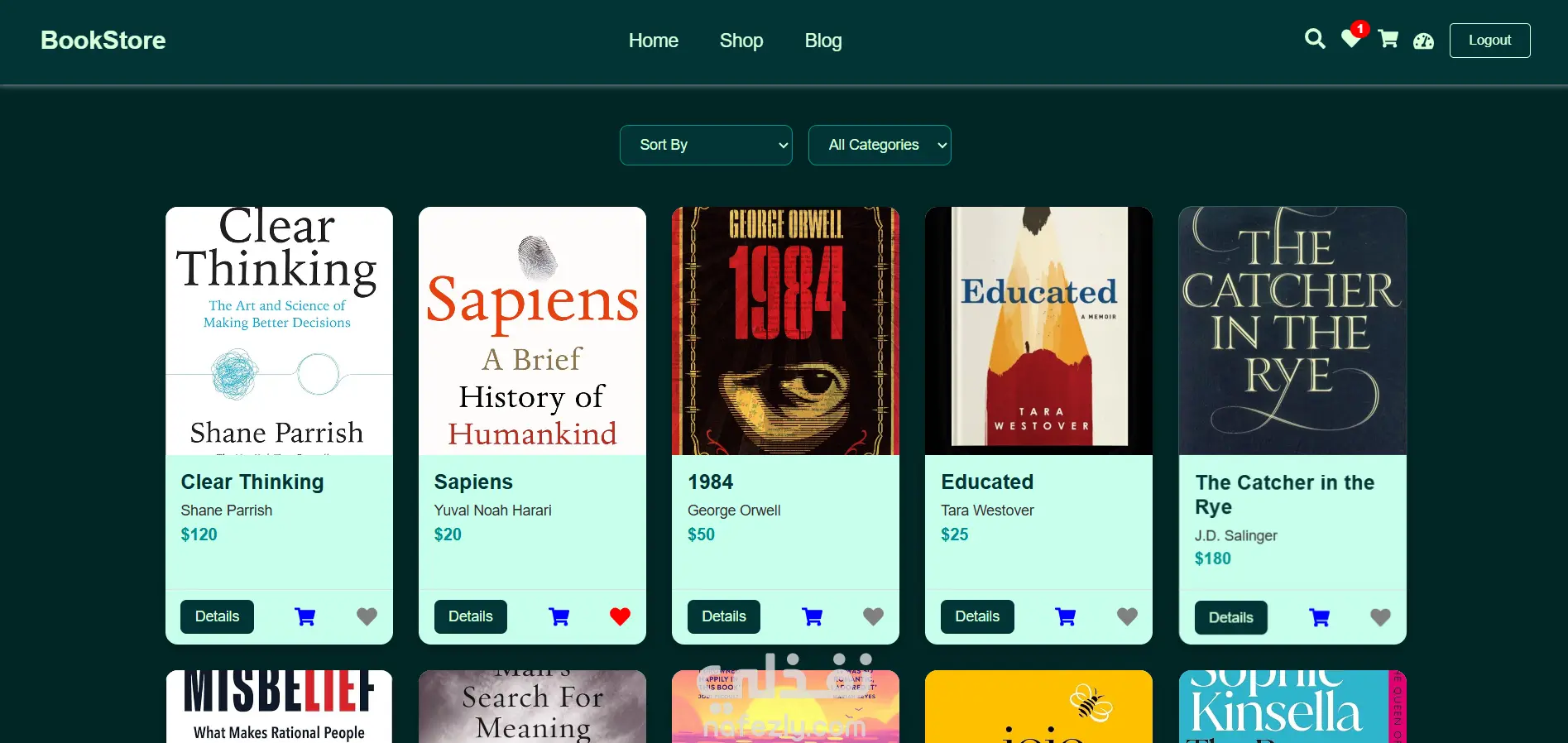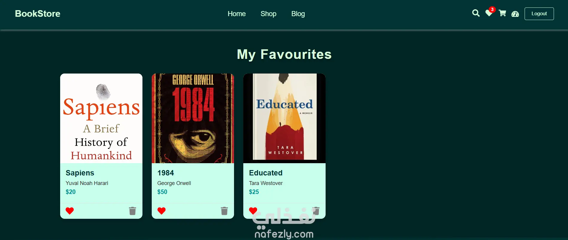 MERN Stack (MongoDB, Express.js, React, Node.js) Developed a full-stack bookstore application with user authentication, product - management, and dynamic data handling. Repo:https://github.com/roaamounir/bookstore