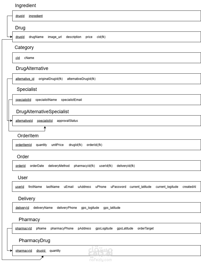 مشروع الصيدلية الإلكترونية هو قاعدة بيانات مصممة لإدارة عمليات شراء الأدوية عبر الإنترنت. تقوم القاعدة بتنظيم وتخزين بيانات الصيدليات، الأدوية، العملاء، والطلبات. يهدف المشروع إلى توفير هيكل منظم يسهل عملية البحث عن الأدوية، تتبع المخزون، وإدارة طلبات العملاء بشكل فعال، مع ضمان الترابط بين الجداول المختلفة لدعم عمل النظام.