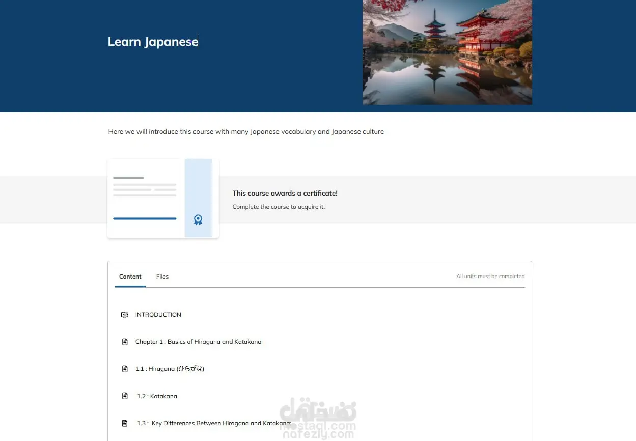 صممت كورس متكامل لتعلم اللغة اليابانية على منصة TalentLMS. الكورس موجه للمبتدئين والراغبين في اكتساب أساسيات اللغة اليابانية بطريقة سهلة وتفاعلية. يبدأ من الحروف (Hiragana, Katakana) وصولًا إلى الجُمل اليومية والتعابير الشائعة. أهم ما يميز الكورس: شرح مبسط للحروف اليابانية وكيفية نطقها. تدريبات عملية على تكوين الجُمل والمحادثات اليومية. دروس عن الثقافة اليابانية لمساعدة المتعلم على فهم السياق. تصميم بصري جذاب باستخدام شرائح توضيحية وصور تعليمية. محتوى منظم تدريجيًا لتسهيل التعلم خطوة بخطوة. التقنيات المستخدمة في إعداد الكورس: Canva (لتصميم المحتوى البصري) | TalentLMS (لرفع وإدارة المحتوى) النتيجة النهائية: كورس تفاعلي يساعد المتعلمين على دخول عالم اللغة اليابانية بثقة، مع أساس قوي يمكنهم البناء عليه لمستويات متقدمة.