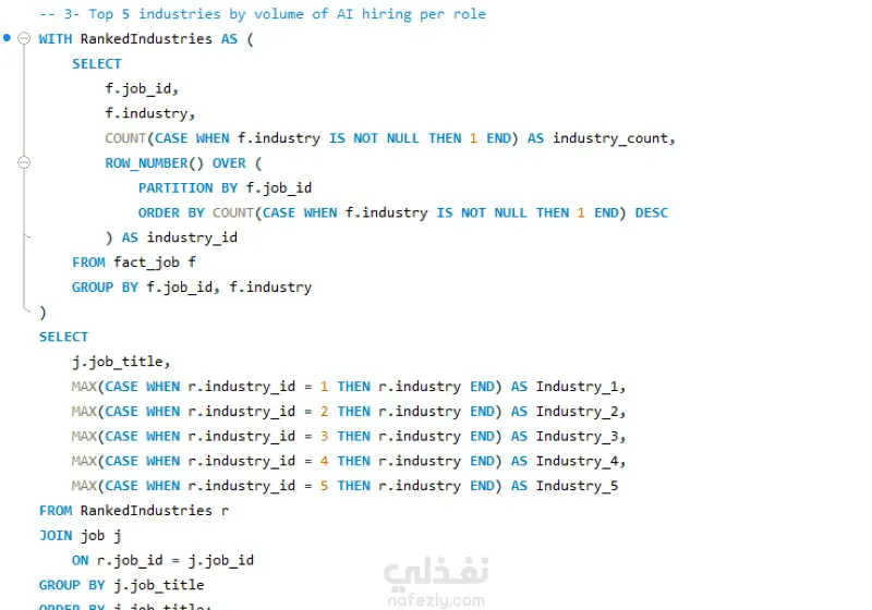في هذا المشروع استخدمت SQL لتحليل البيانات واستخراج مؤشرات دقيقة تساعد في فهم الأداء العام. قمت بكتابة استعلامات (Queries) متقدمة تضمنت استخدام CTEs، التجميع (Aggregation)، الترتيب (Ranking)، والتصفية (Filtering) للحصول على رؤى تفصيلية من قواعد البيانات. العمل ركّز على تنظيم البيانات الخام وتحويلها إلى نتائج قابلة للفهم واتخاذ القرار، مع مراعاة الأداء والكفاءة في كتابة الأكواد. النتيجة كانت مجموعة تقارير تحليلية ذكية توضح العلاقات بين البيانات وتكشف الاتجاهات الهامة بطريقة عملية وواضحة.