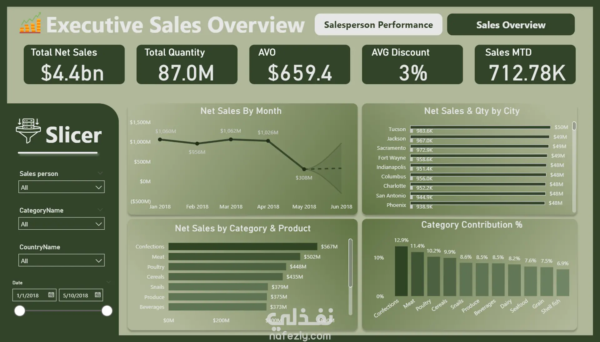 تقييم أداء المبيعات حسب المناطق والمندوبين.