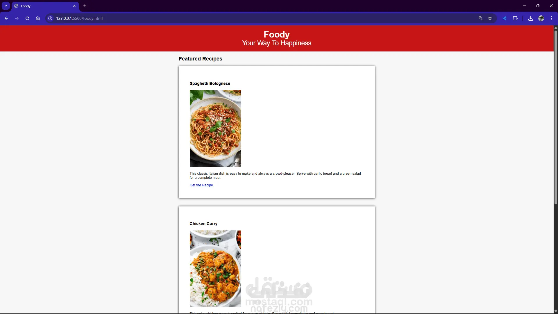 Foody – موقع ويب بسيط لعرض وصفات الطعام