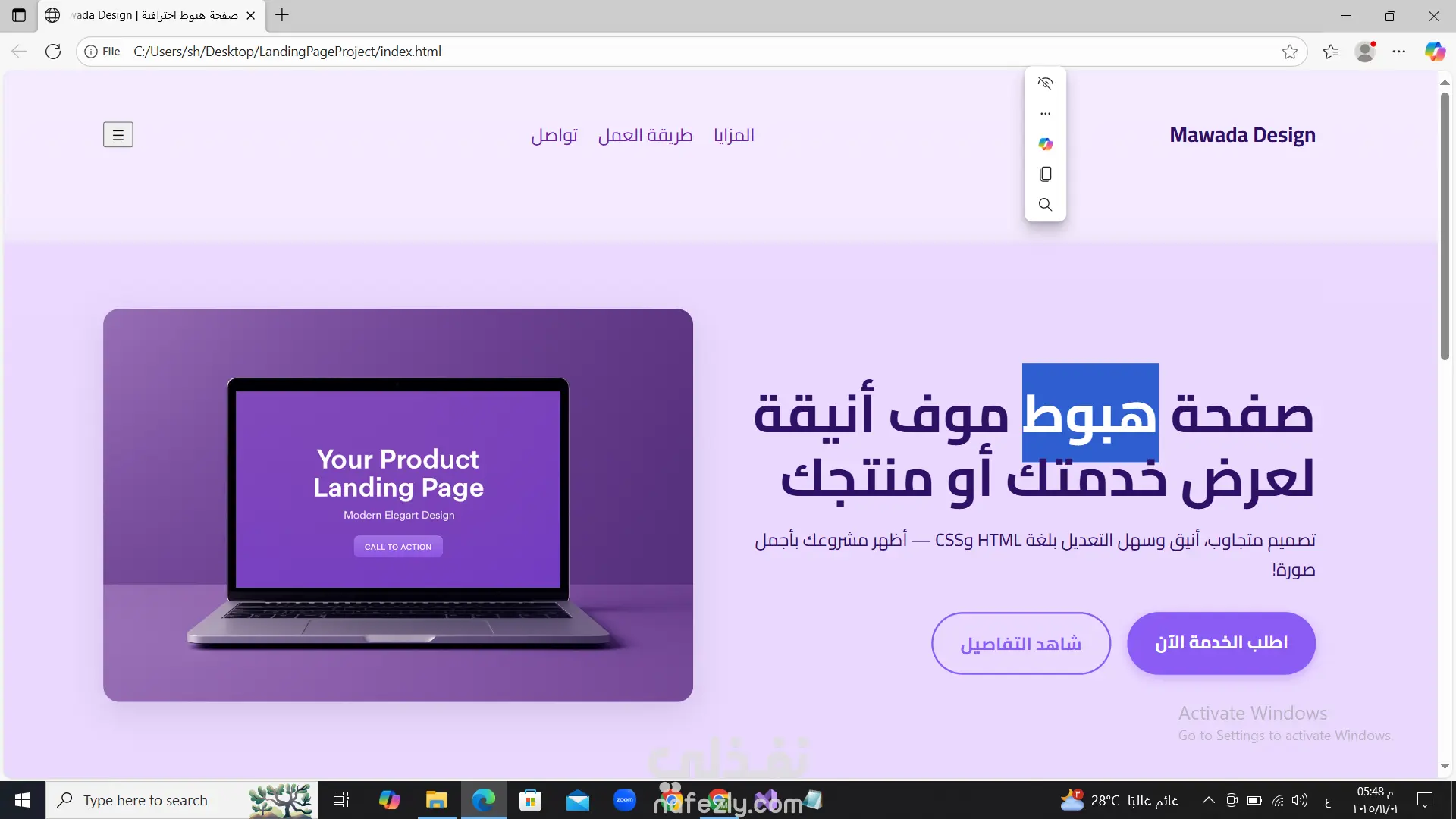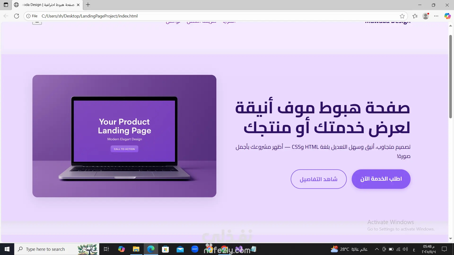 تصميم صفحة هبوط جذابة ومناسبة لهدفك (منتج/خدمة/شخصي).
