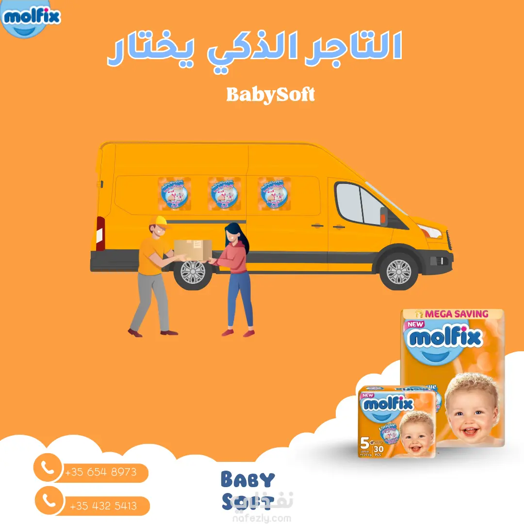مشروع حول حملة إعلانية كاملة لمنتج حفاضات الأطفال BabySoft، تضمنت مجموعة من التصاميم الموجهة لوسائل التواصل الاجتماعي. اعتمدت في الحملة على ألوان دافئة وملائمة لفئة الأمهات والأطفال (البرتقالي، الأبيض، والسماوي)، مع الحفاظ على أسلوب بصري ناعم يعكس الراحة والثقة. الهدف من الحملة هو إبراز جودة المنتج وراحته وأمانه بطريقة جذابة وبسيطة، تعكس القيم العائلية وتلفت انتباه الجمهور المستهدف.