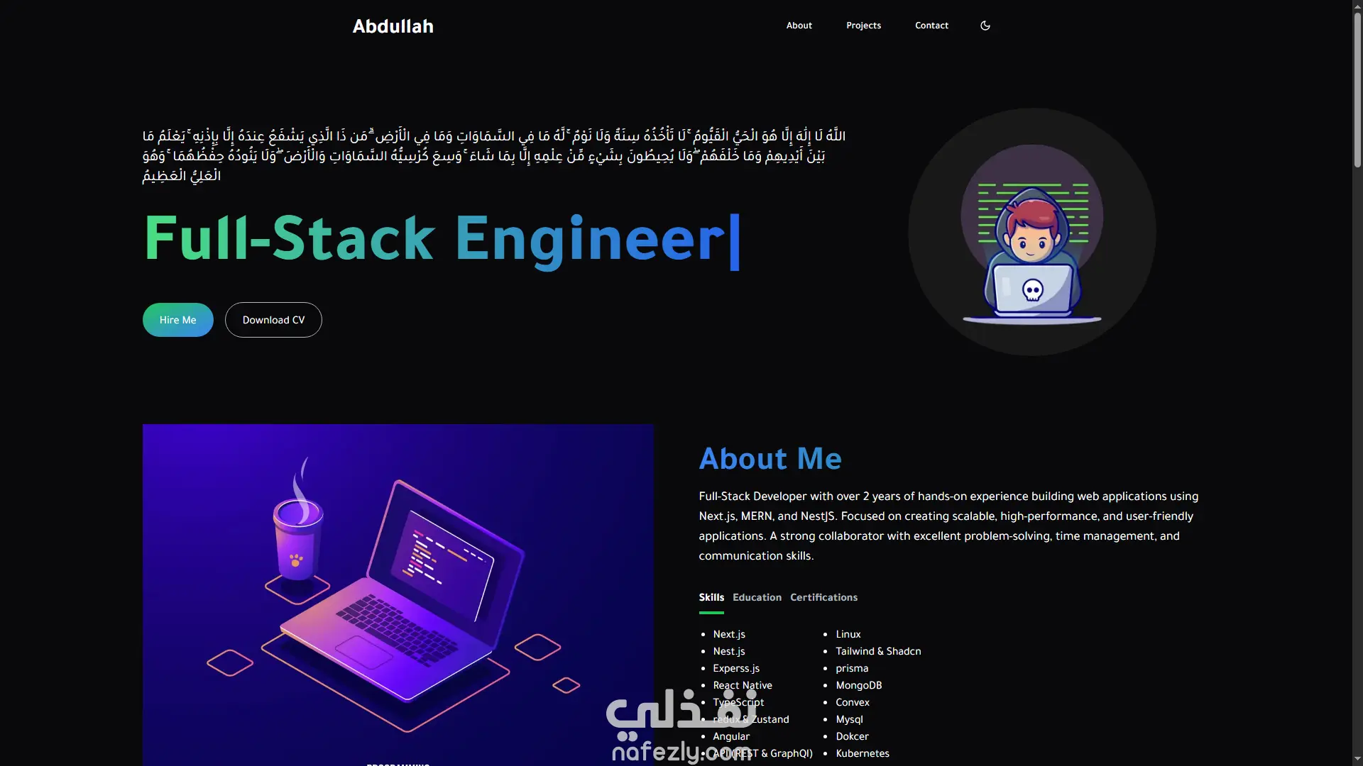 هذا موقعي الشخصي، وهو مثل معرض إلكتروني أعرض فيه نماذج من أفضل أعمالي ومشاريعي السابقة. هدفي منه أن يطلع الناس على مهاراتي وخبراتي بشكل واضح وجذاب. يعتبر وسيلتي المثلى لتقديم نفسي للعملاء المحتملين أو أرباب العمل، أملاً في الحصول على فرص عمل أو تعاون جديدة تناسب مساري المهني.