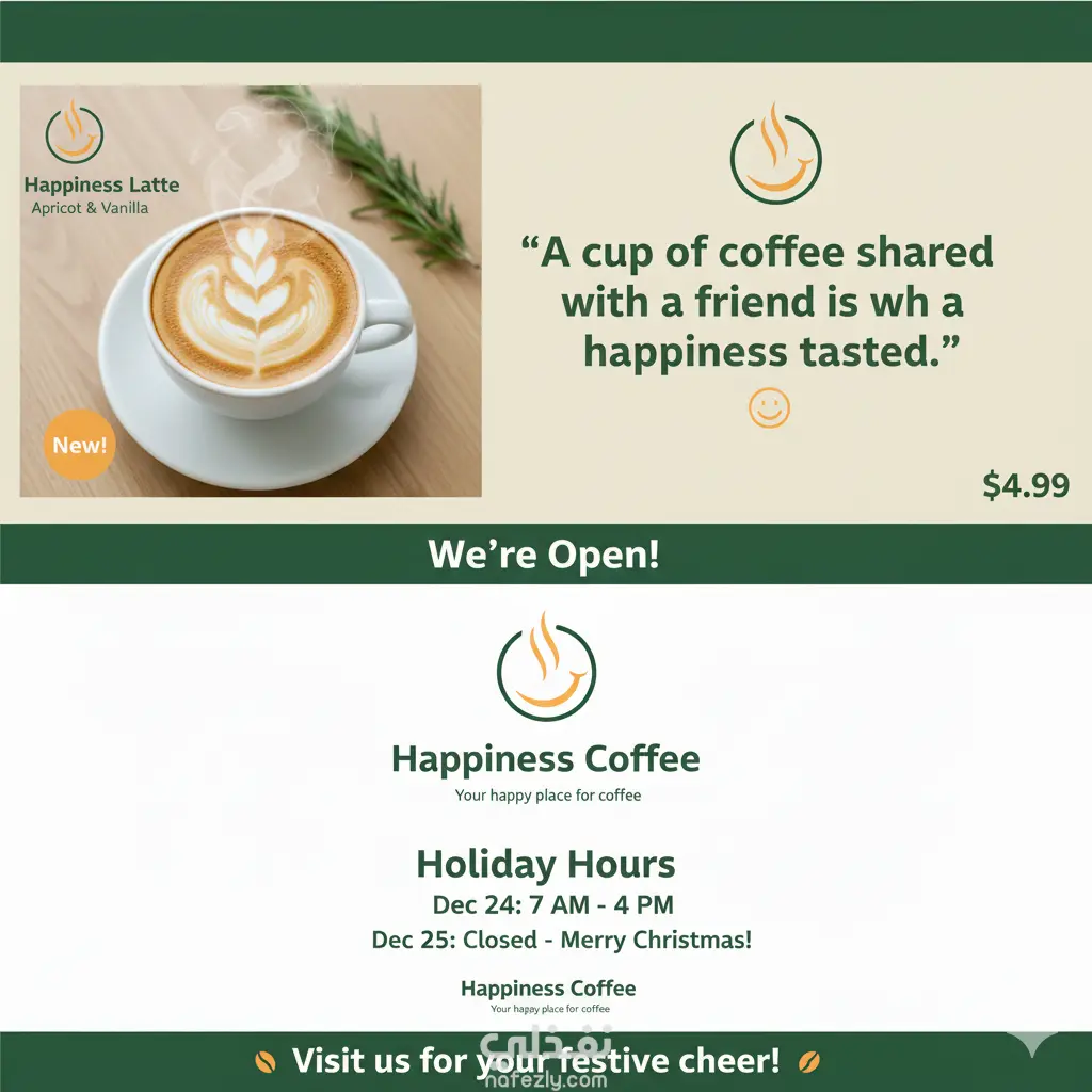 تصميم براند كامل لمحل قهوة صغير بطابع دافئ وأنيق