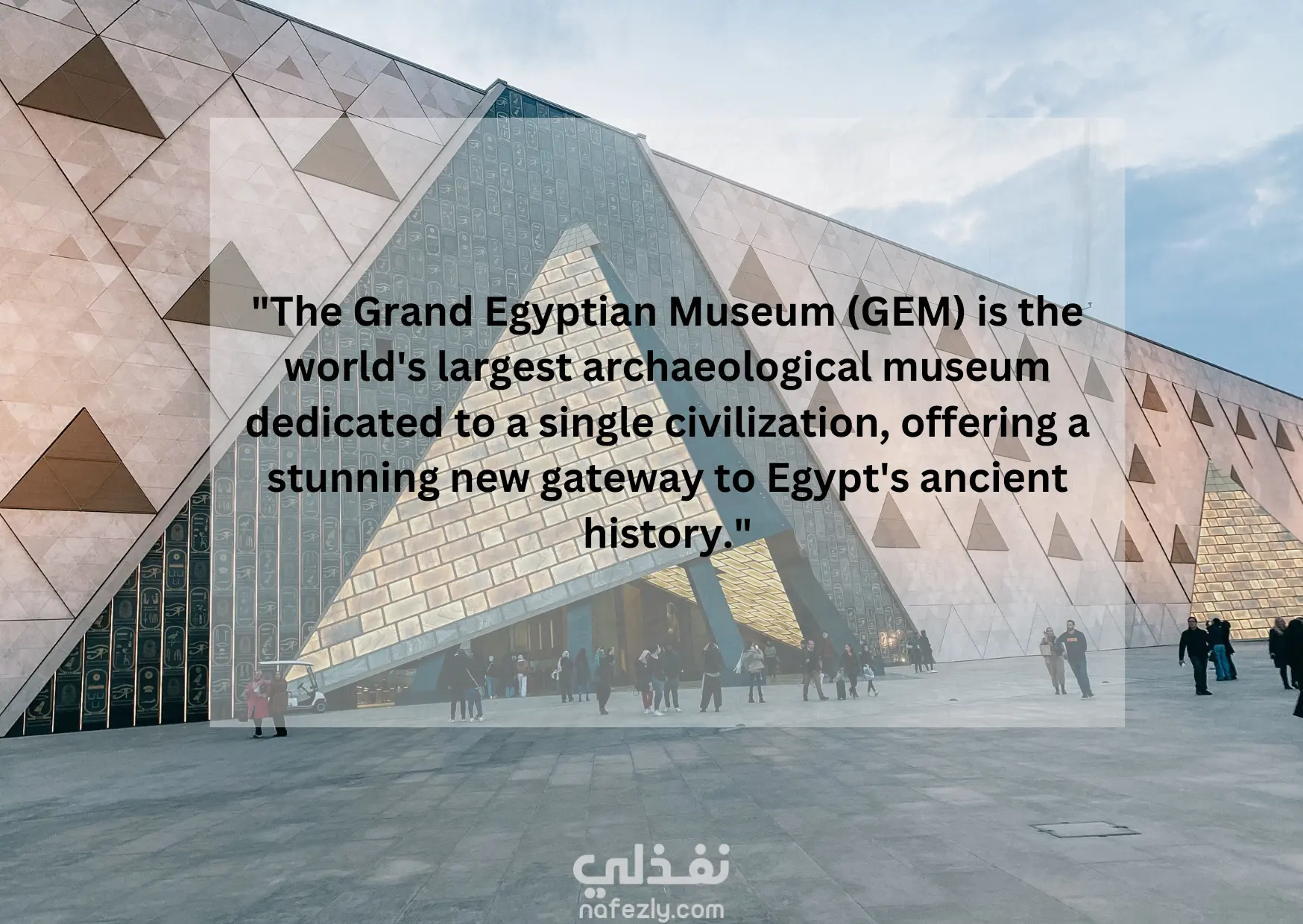 "The Grand Egyptian Museum (GEM) is the world's largest archaeological museum dedicated to a single civilization, offering a stunning new gateway to Egypt's ancient history."