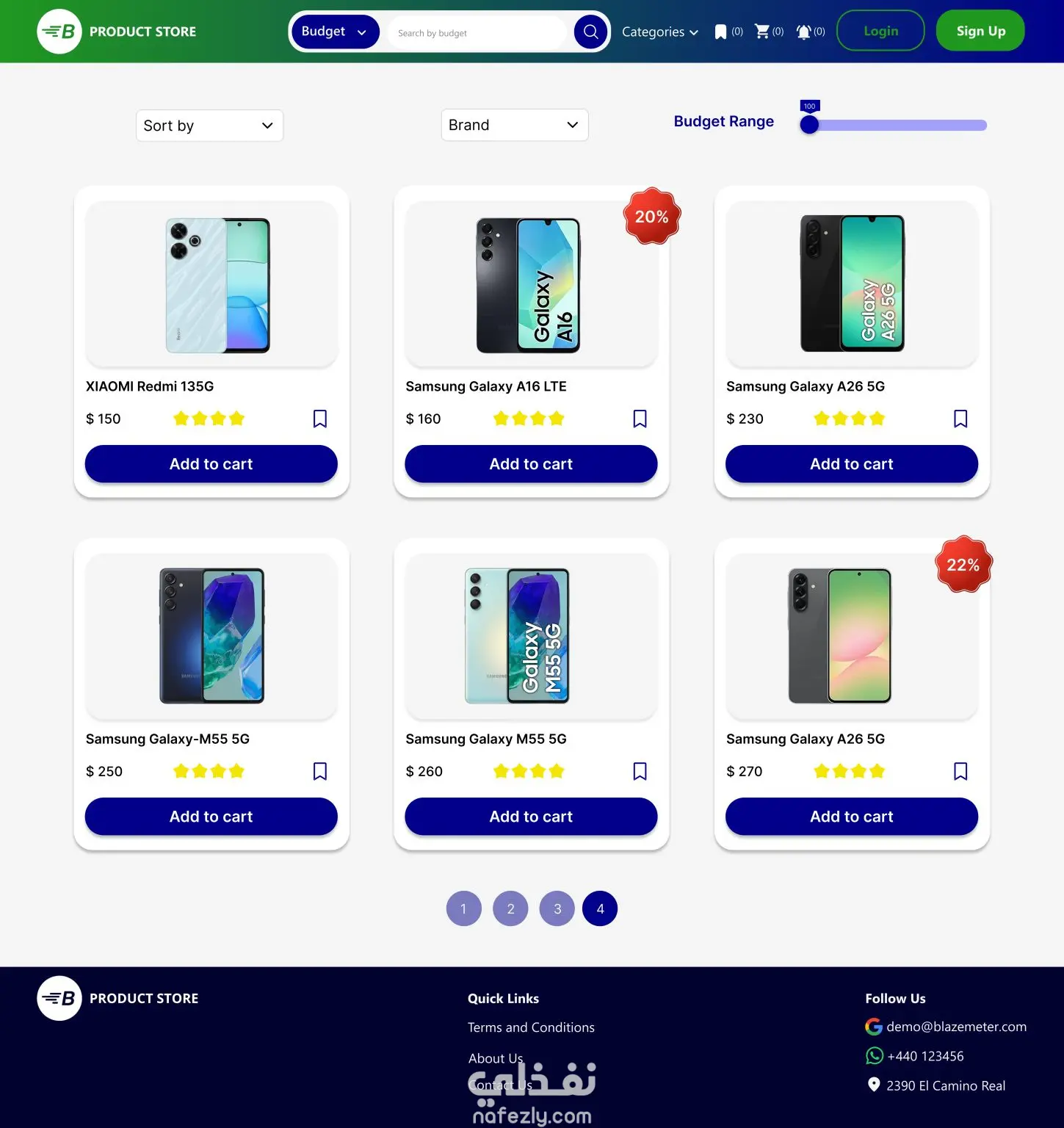 تصميم واجهة مستخدم حديث لموقع تجارة إلكترونية تقنية