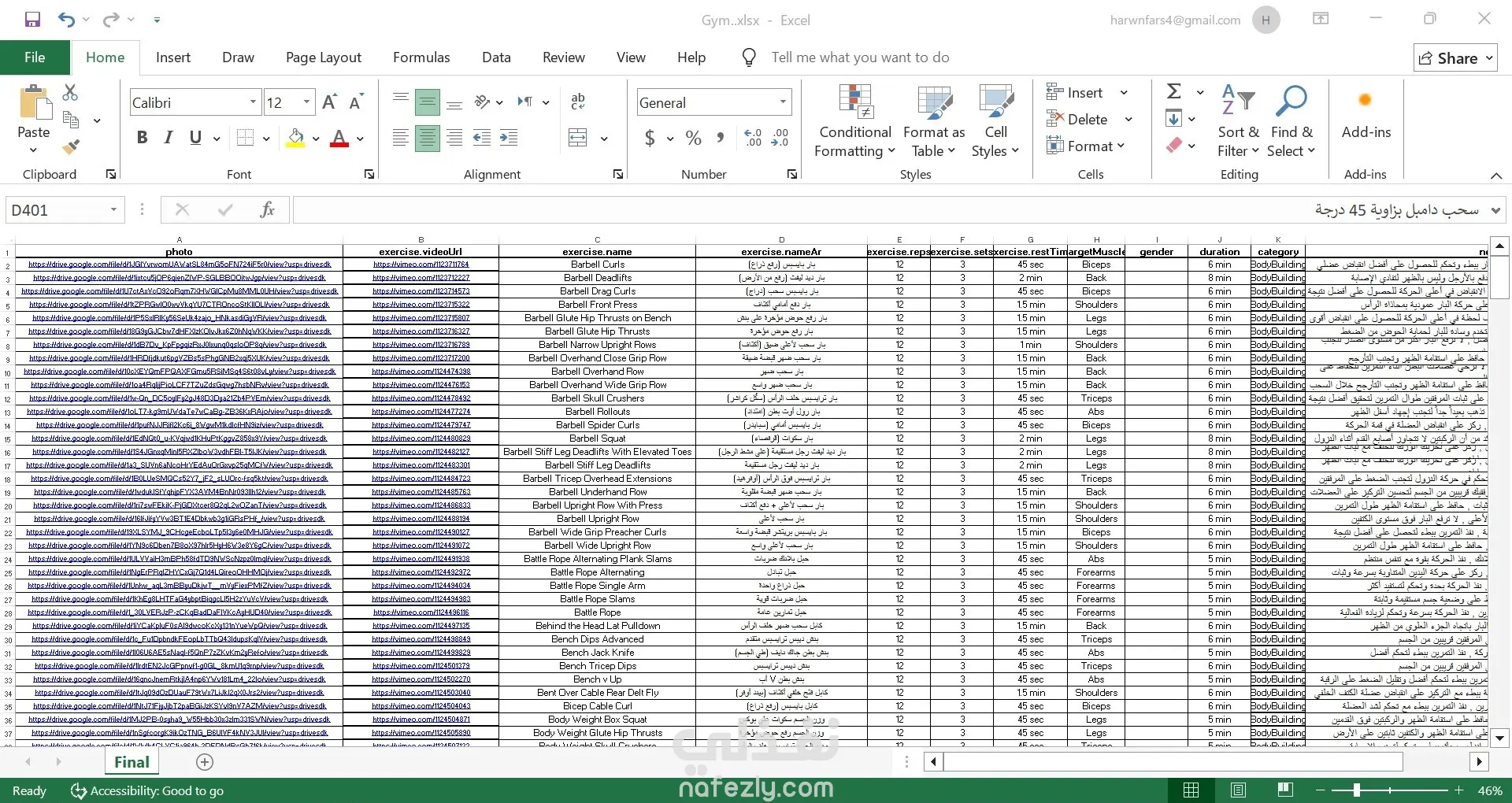 عمل قاعده بيانات لصاله Gym رياضيه مكونه من 400 فيديو مرفوعه على منصه Vimeo وعناوين التمارين واسماء العضلات المستهدفه باللغه العربيه و الانجليزيه وصوره موضحه لكل تمرينه و ملاحظات للمبتدئين . هى قاعده ببيانات مساعده للمبتدئين والمحترفين تسهل العمل جدا لكل من يملك صاله Gym او مدرب فى مجال كمال الاجسام .