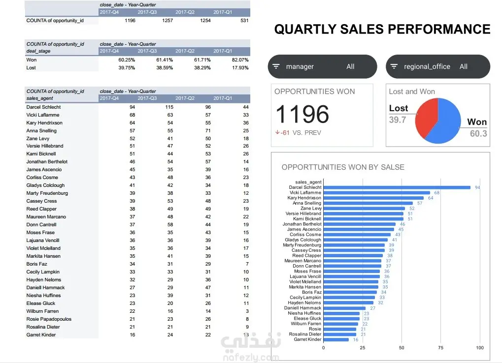 Build an interactive dashboard for Sales Managers to track their team's quarterly performance