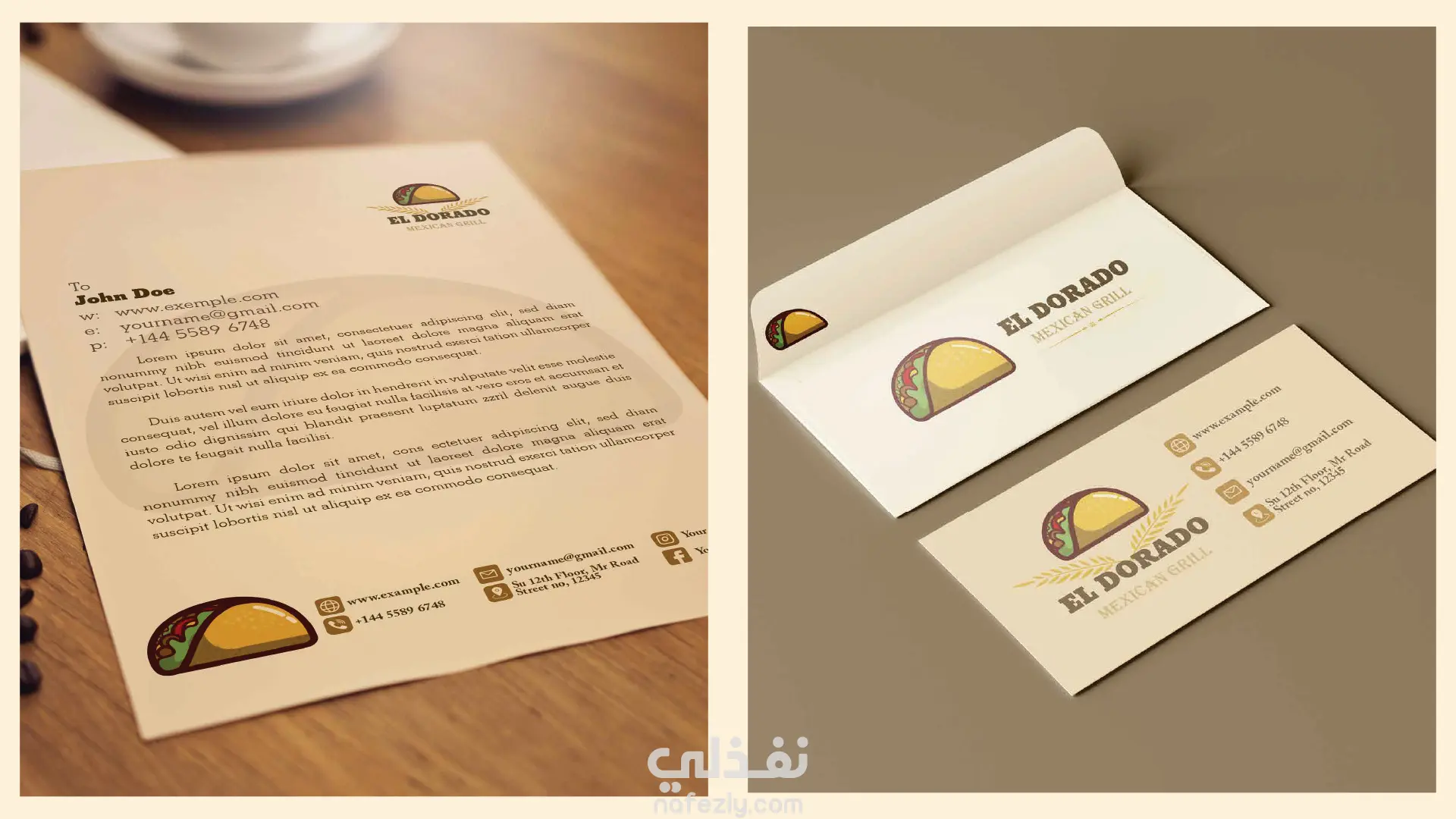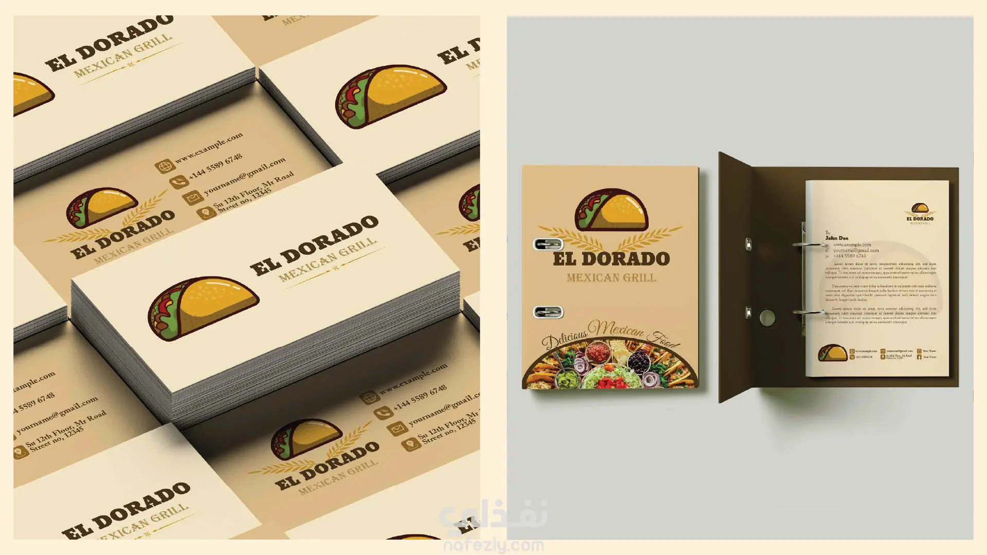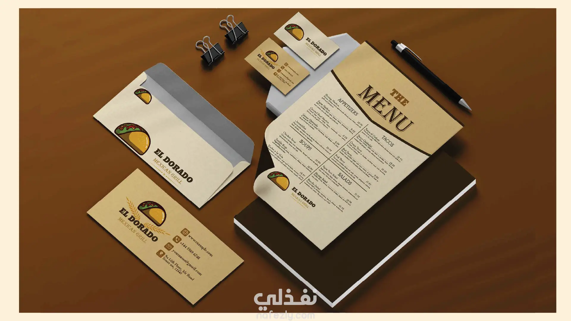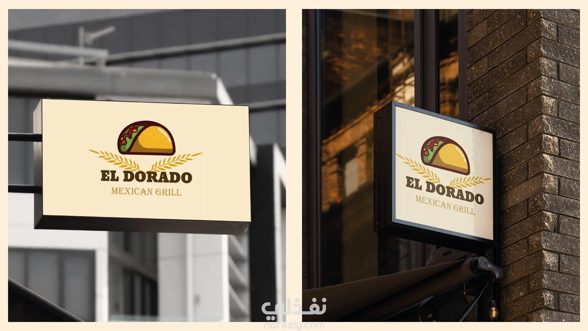 يركز الشعار على عنصر بصري مميز يمثل التاكو المكسيكي، مع دمج الألوان الترابية والذهبية التي تعبّر عن الدفء، النكهة، والأصالة.