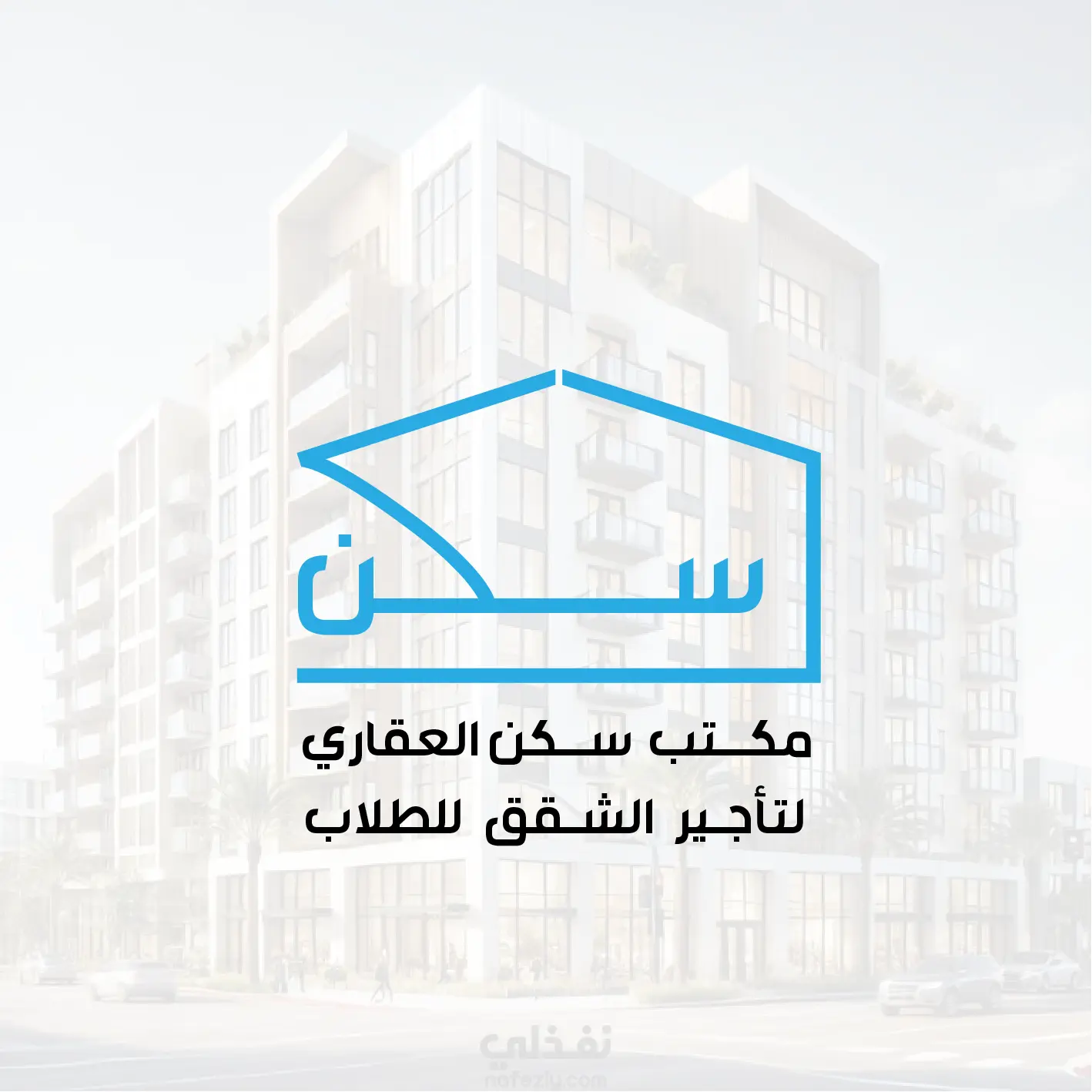 الشعار يوصل رسالة مباشرة: هذا مكانك المريح والآمن خلال فترة دراستك. تصميمه يعكس احترافية المكتب وسهولة الوصول للخدمات العقارية الموجهة لفئة طلابية تبحث عن السكن المناسب
