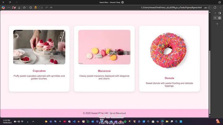 تصميم واجهة موقع لمطعم Donuts House يقدم تجربة مميزة لعشاق الدونتس. التصميم يركّز على ألوان دافئة وأجواء مرحة تعكس هوية العلامة، مع واجهة متجاوبة وسهلة التصفح. الصفحات تشمل: الصفحة الرئيسية: عرض أشهر النكهات والعروض الخاصة. قائمة المنتجات: عرض منسّق للمنتجات مع الأسعار والصور.