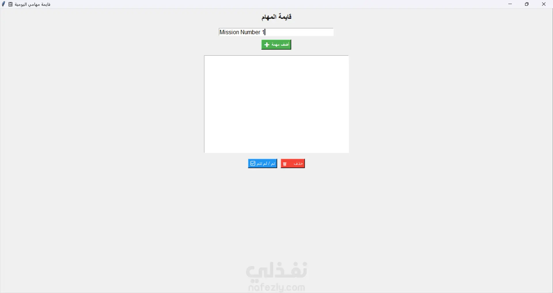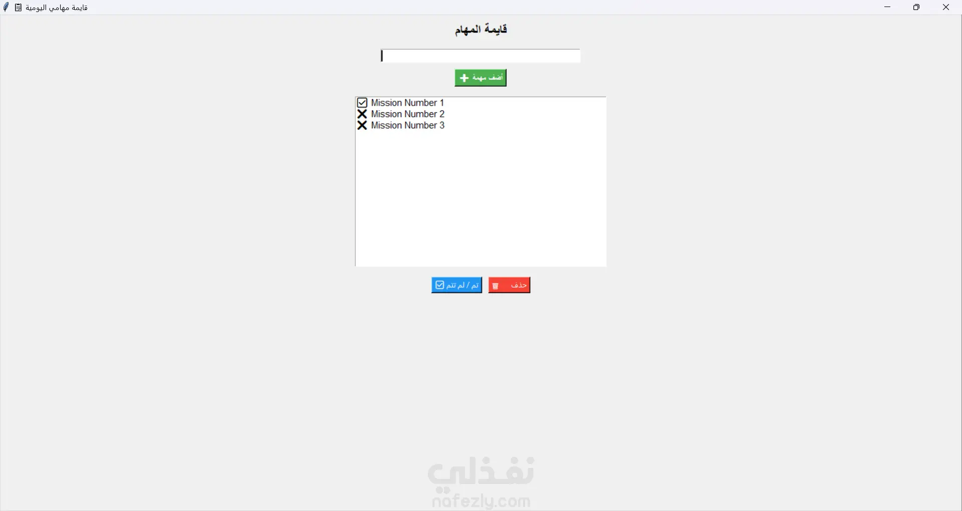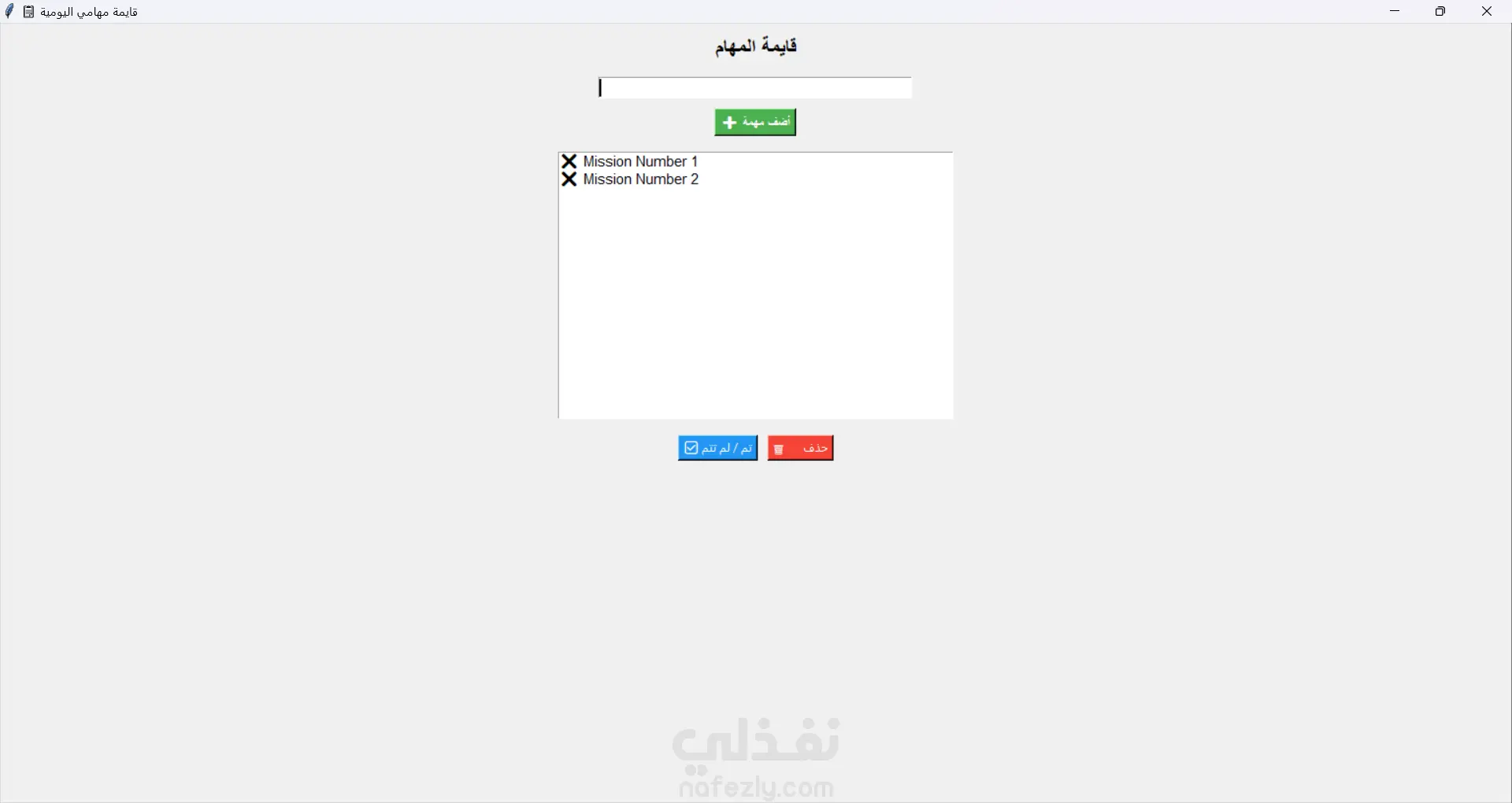 تطبيق بسيط وسهل الاستخدام لإدارة المهام اليومية باستخدام **Python** وواجهة رسومية **Tkinter**.