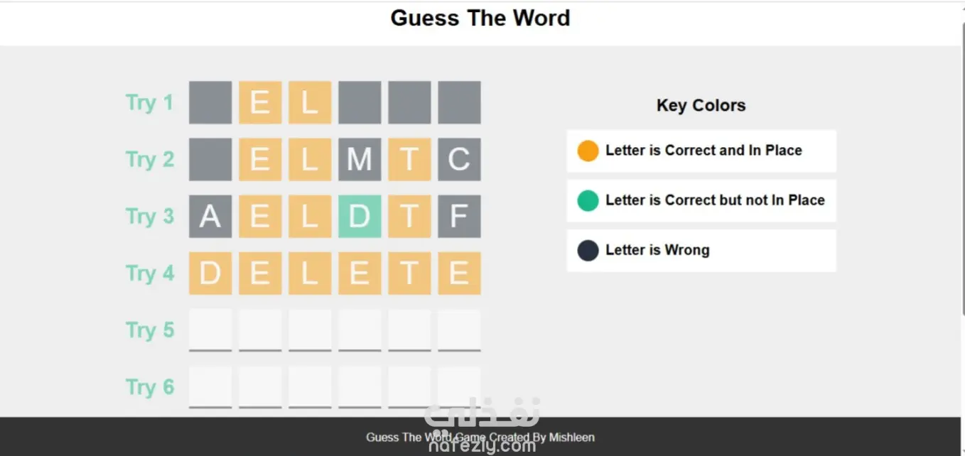 لعبة تفاعلية تم تطويرها باستخدام HTML وCSS وJavaScript، تهدف إلى تقديم تجربة ممتعة للمستخدم في تخمين كلمات من تصنيفات مختلفة. عند الاختيار العشوائي للكلمة، على المستخدم تخمينها حرفاً تلو الآخر قبل نفاد المحاولات.