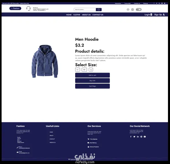 Fashion هو موقع تجارة إلكترونية مخصص لشراء المنتجات عبر الإنترنت. تم تطوير المشروع على عدة مراحل، بدأت بمرحلة البحث، ثم رسم التخطيطات الأولية (Sketching)، تلتها مرحلة التصميم عالي الدقة باستخدام Figma، ثم تم تطبيق هذا التصميم على أرض الواقع وتحويله إلى موقع إلكتروني متكامل يعمل فعليًا.