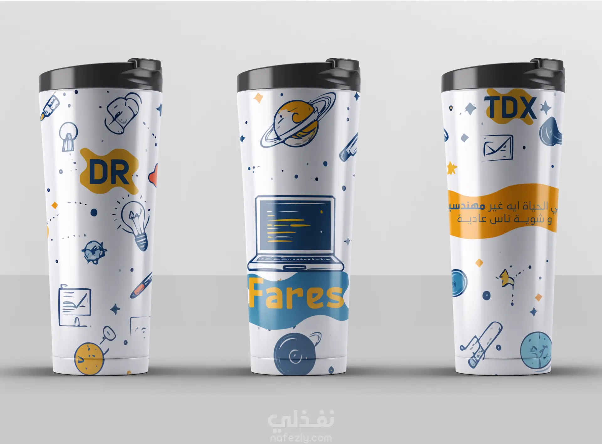 تصاميم أغلفة خاصة بمنتجات متنوعة مثل الاكواب والكتب وبعض المنتجات الاخرى
