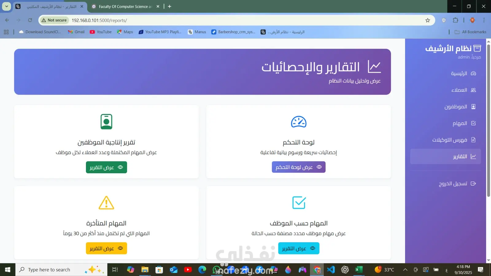 نظام مخصص لمكاتب المحاسبة يهدف إلى تسهيل إدارة العملاء والموظفين والمهام اليومية داخل المكتب. تم تطويره باستخدام Python وFlask مع واجهة بسيطة وسريعة باللغة العربية. يتيح النظام: • إدارة بيانات العملاء وجميع ملفاتهم (السجل التجاري، العقود، الفواتير، إلخ). • إدارة الموظفين وتحديد مسؤوليات كل موظف عن مجموعة من العملاء. • نظام مهام داخلي لتوزيع المهام من الأدمن على الموظفين مع تتبع حالة كل مهمة. • تقارير شاملة لمتابعة أداء المكتب وسير العمل. يعمل النظام على الشبكة المحلية داخل المكتب بدون الحاجة إلى سيرفر خارجي، ويوفر تجربة سلسة وسريعة في بيئة العمل اليومية.